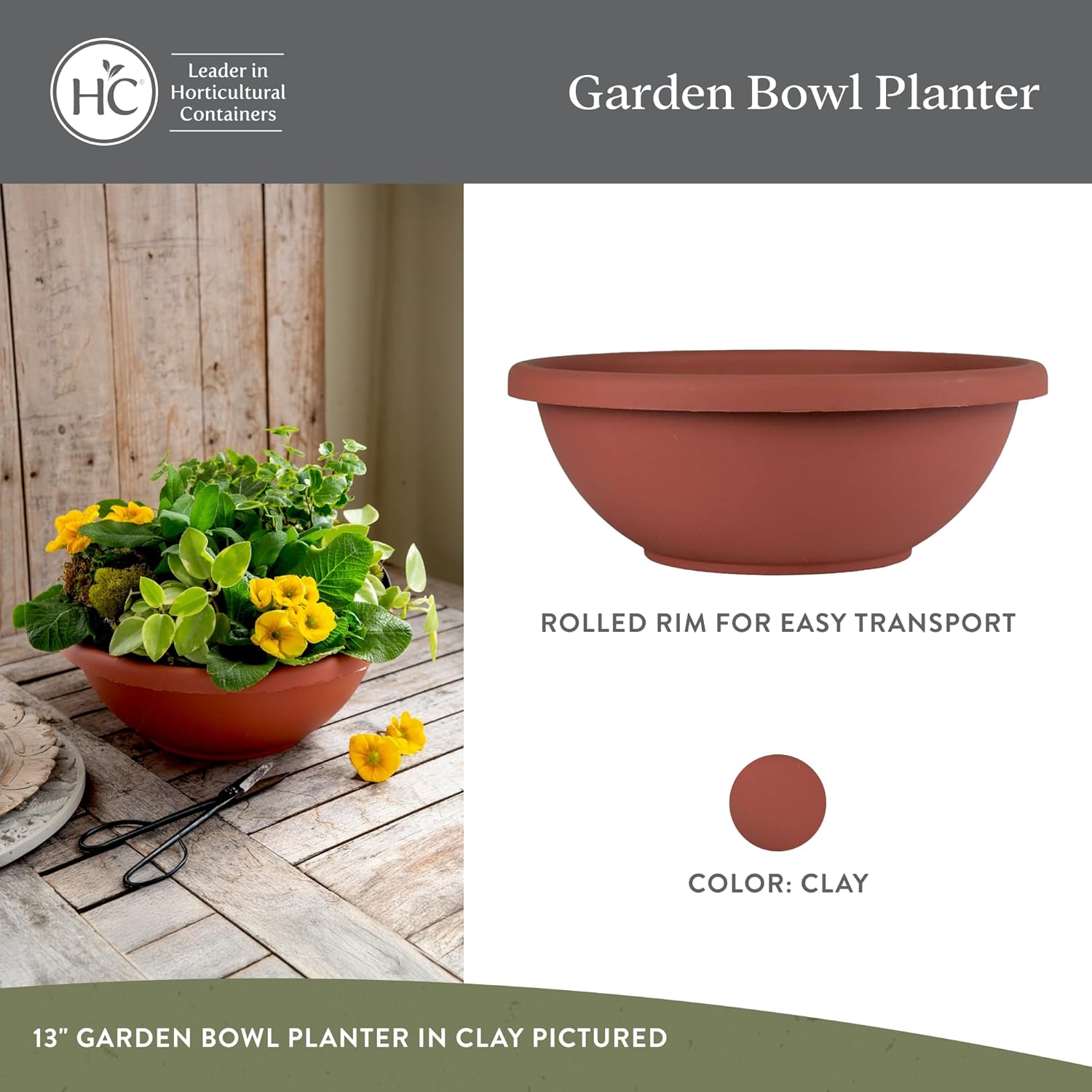 The HC Companies Shallow Planter with Drainage - Contemporary Garden Bowl Planter for Flowers, Herbs & More - Round Succulent Planter Pot for Indoors and Outdoors (15.5" Clay, Pack of 1)
