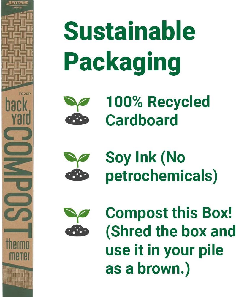 - 100% Compostable Packaging - Printed with soy-based ink, zero waste, no plastic, no Styrofoam, shred the box to use in your compost pile as a brown