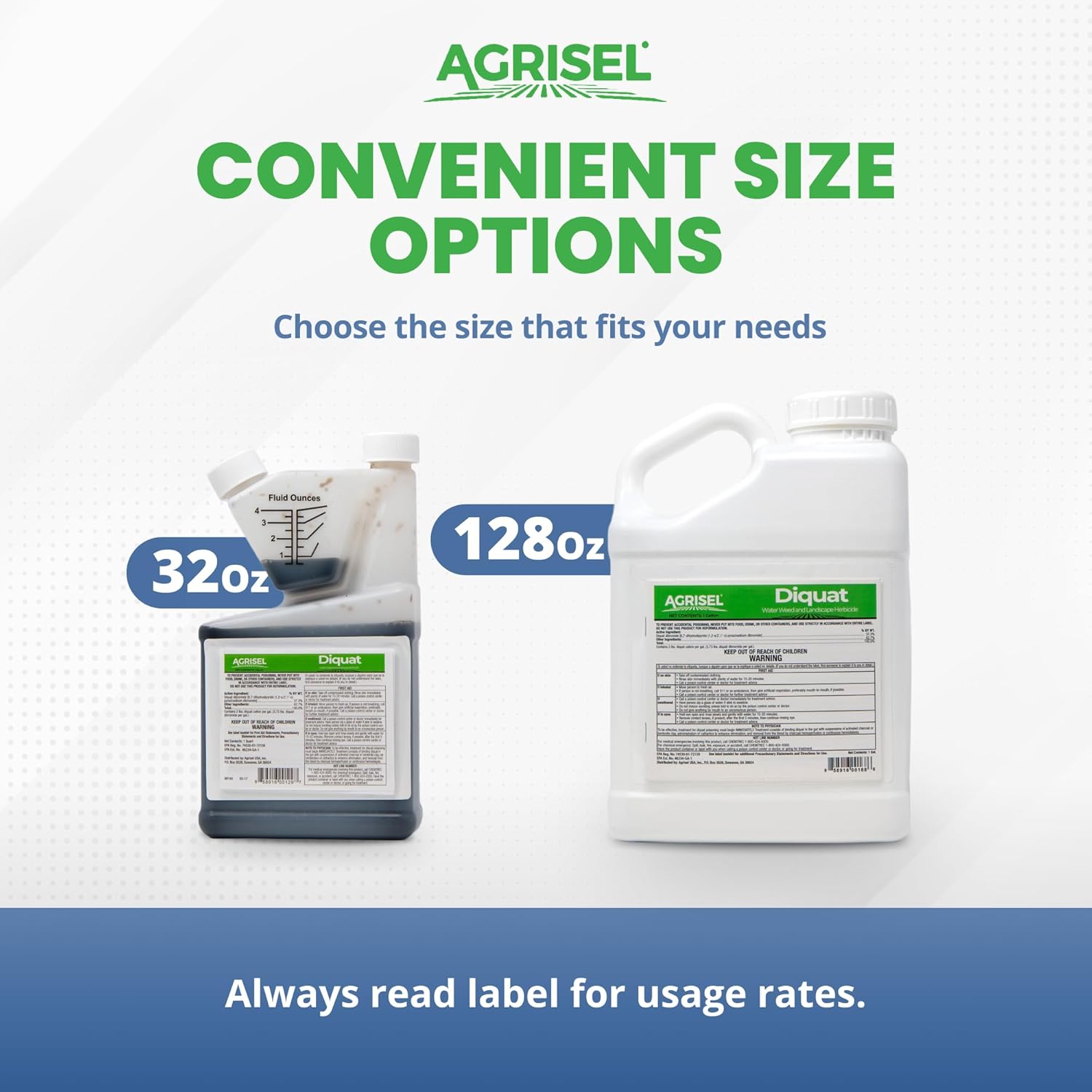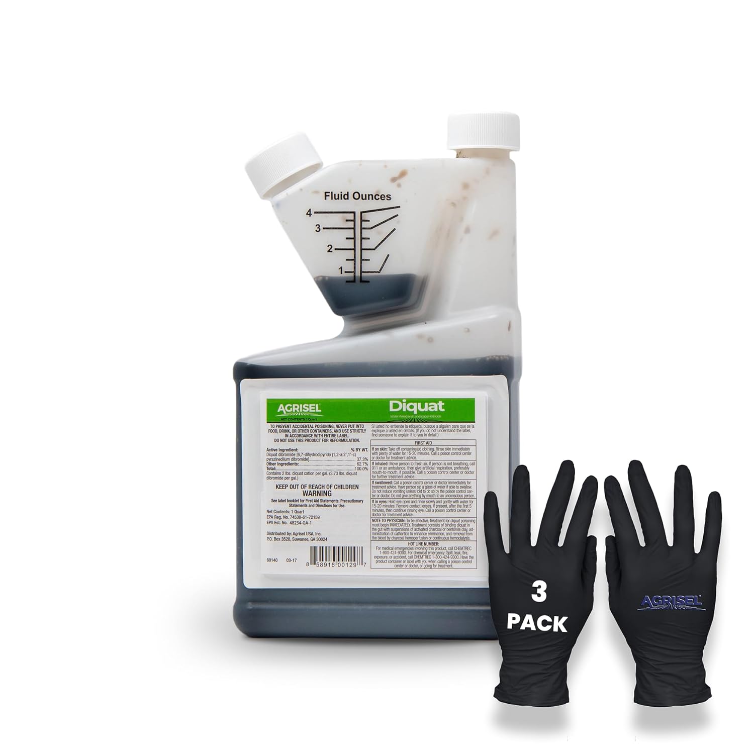 Diquat Weed Killer, Fast-Acting Formula for Aquatic and Landscape Weeds, Safe on Ornamentals, Visible Results in 1-2 Days, Pet Safe, 3-Pack of Disposable Gloves Included, 32 Ounces