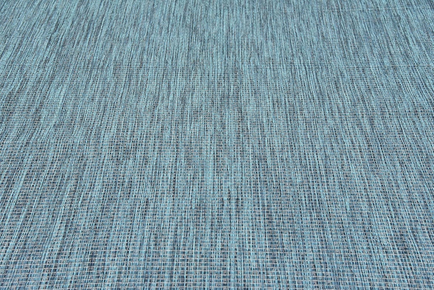 Unique Loom Collection Casual Transitional Solid Heathered Indoor/Outdoor Flatweave Area Rug (8' x 11' 4" Rectangle, Teal/Navy Blue)