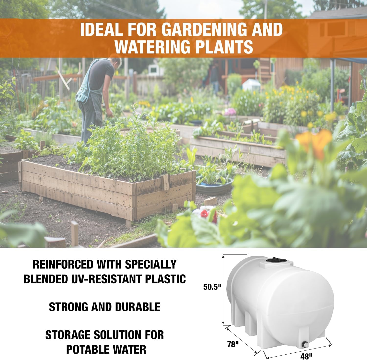RomoTech 82124269 Horizontal Polyethylene Reservoir Water Tank w/Legs, 550 gal, Made in USA, Natural Poly Tank for Non-Flammable Liquids, UV-Resistant, Ideal for Agricultural Use, RV Water Storage