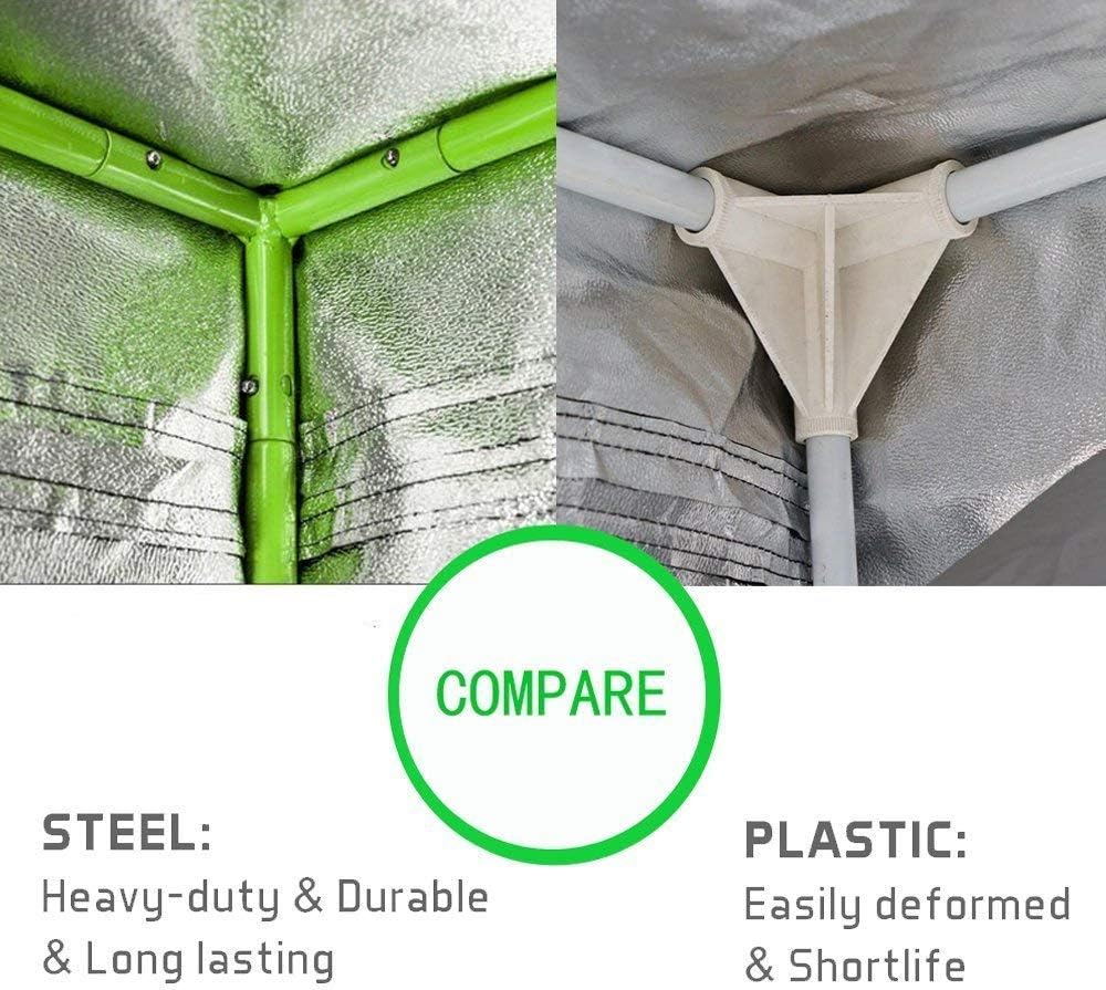 - ๐ฟ Tough Canvas & Durability- 600D material is tear proof and double stitched for perfect light blocking .Thick materials and durable zippers to make it a long-term use. It is is tear proof and water-resistance. Metal bars and metal connectors. Strong metal poles with easy click connector system. Our grow tent stands solidly