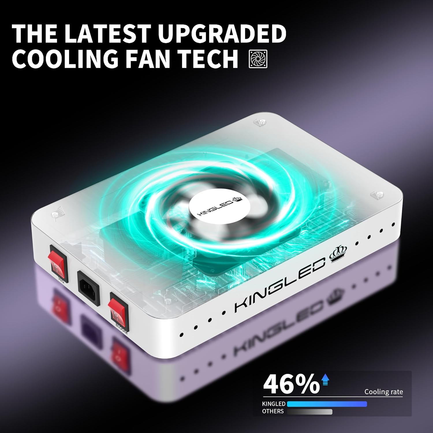 - Efficient Heat Dissipation: The aluminum heat sink and metal construction ensure excellent heat dissipation, keeping the temperature within optimal levels (50°f to 60°f); This cooling system prevents overheating, allowing the light to work efficiently without harming plants; Having the high-speed mute fans, the light remains quiet and stable, increasing its lifespan
