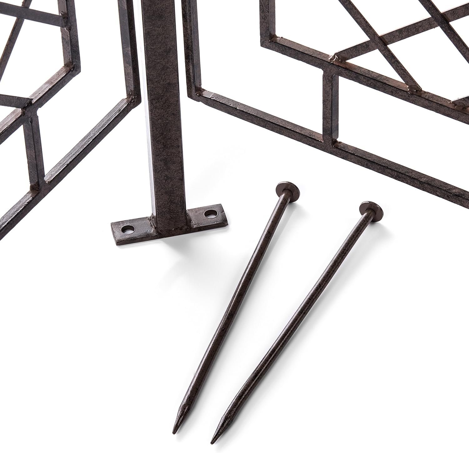 - Securely Packaged & Built To Last β Professionally packaged and requiring assembly, trellis is over 75 pounds, we recommend two people for assembly. The iron trellis is pleasing to the eye and perfect for growing vines or purchased as a pair to create private space. With dimensions of 51 inches wide by 72 inches high (plus 12 inch ground spikes) this heavy-duty trellis offers a secure anchoring system that will happily support large plant material.