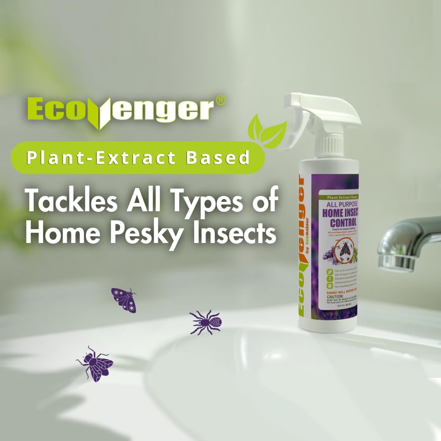 EcoVenger by EcoRaider All Purpose Insect Control 16 oz, Fleas, Fruit Flies, Gnats, Moths, Roaches, Spiders, Fast Kill, Lasting Prevention, Kill Eggs, Plant Extract Based & Non-Toxic, Child & Pet Safe