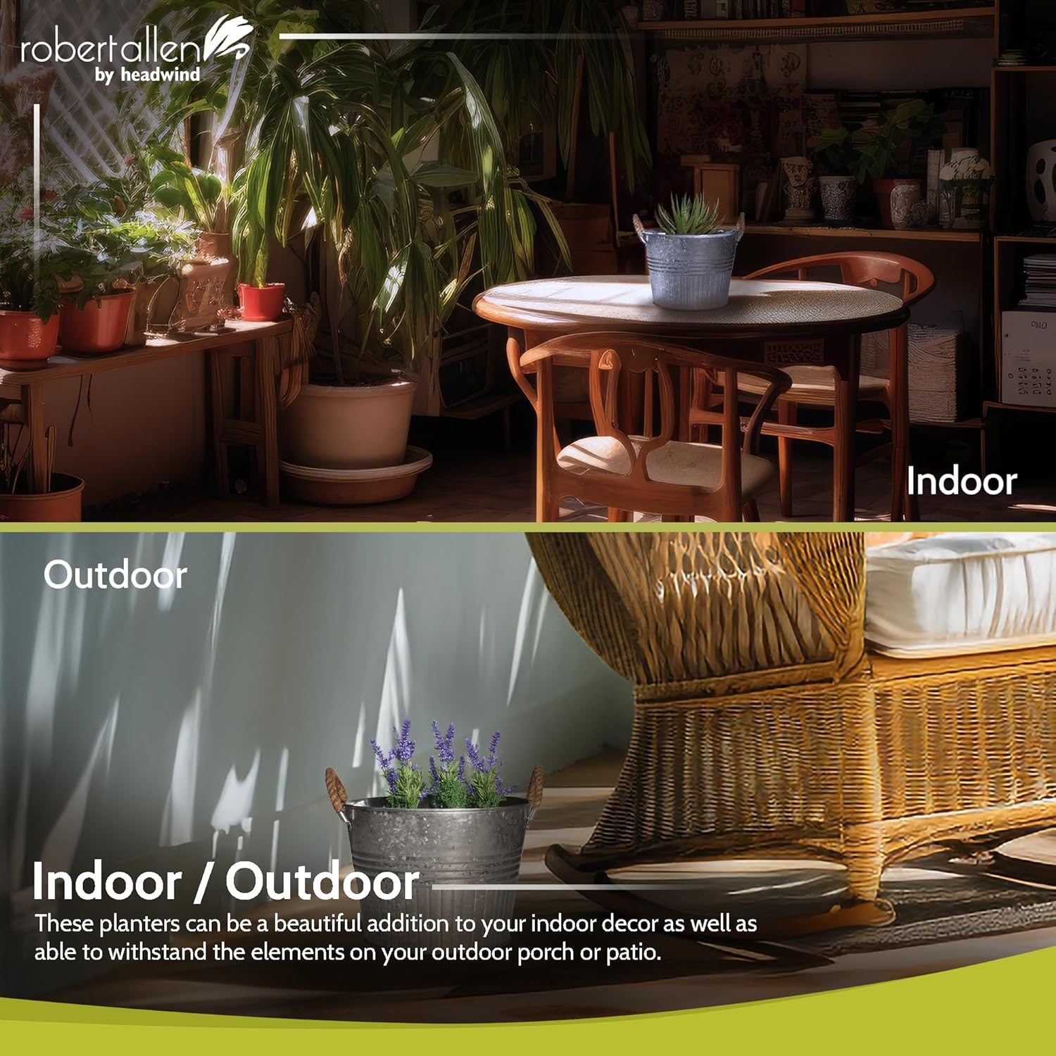 Headwind Round Galvanized Bucket w/Rope Handles – 6 Inch Metal Tub Bucket Planter for Outdoor Plants with Drainage Hole – Galvanized Large Outdoor Planters Buckets by Robert Allen