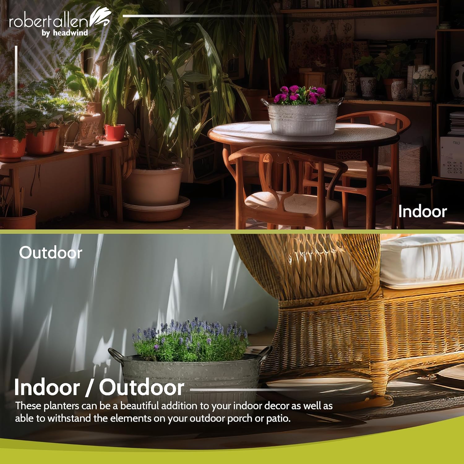Headwind Oval Galvanized Tubs Planter with Handles – 24 Inch Lightweight Steel Indoor Oval Plant Pot with Drainage Holes – Large Galvanized Tub Flower Bucket – Outdoor Planter by Robert Allen