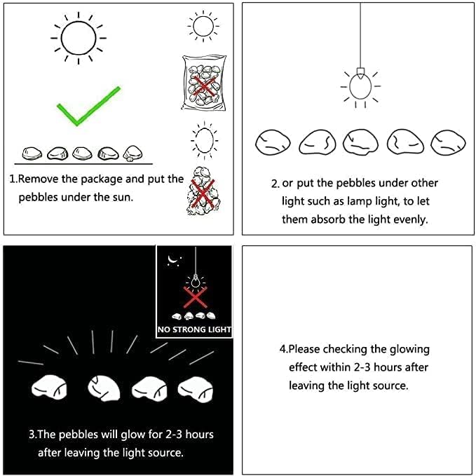- 100% SATISFACTION OR FULL MONEY BACK - Your satisfaction is our NO.1 priority. If the pebbles do glow, please contact us first. We will replace them for you.