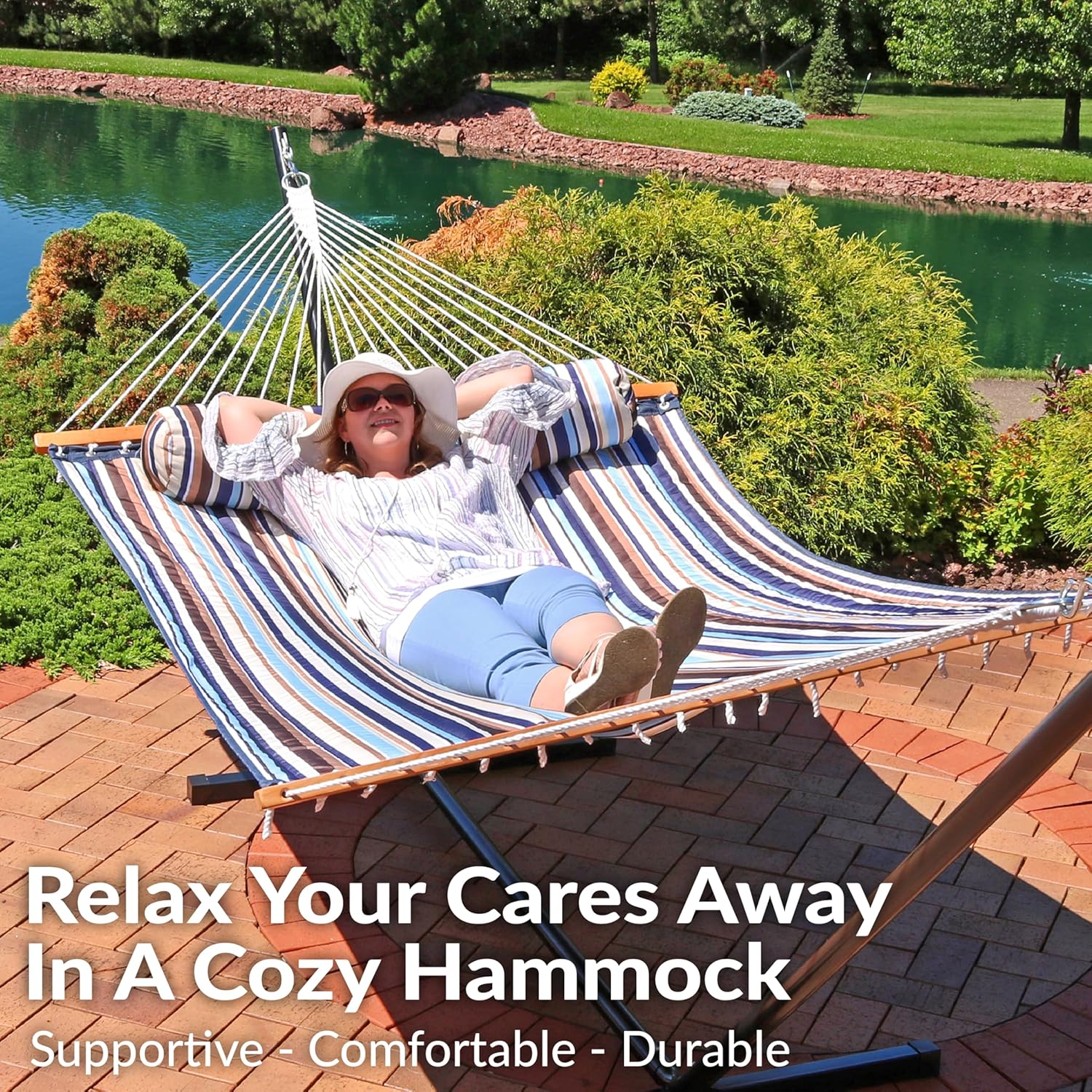 Sunnydaze Quilted Outdoor Hammock with Spreader Bars - Heavy-Duty 450-Pound Capacity Double Hammock for Outside - Ocean Isle