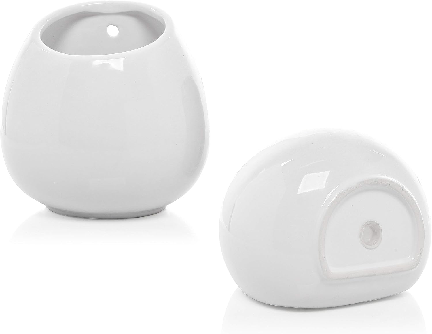 - Set of 2 white ceramic 6-inch round wall-hanging pots