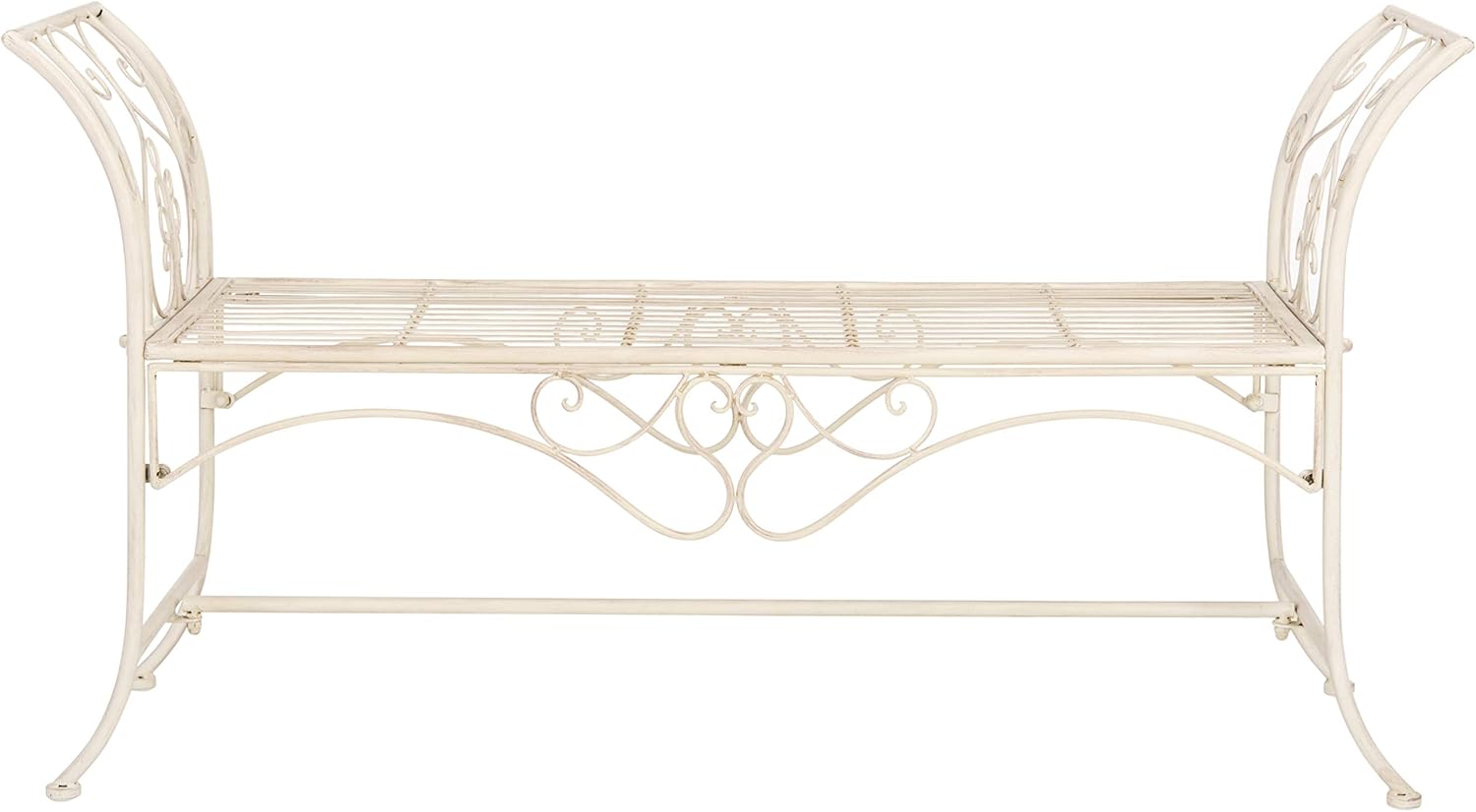 SAFAVIEH PAT5016A Collection Arona Antique White Wrought Iron 51" Outdoor Garden Bench