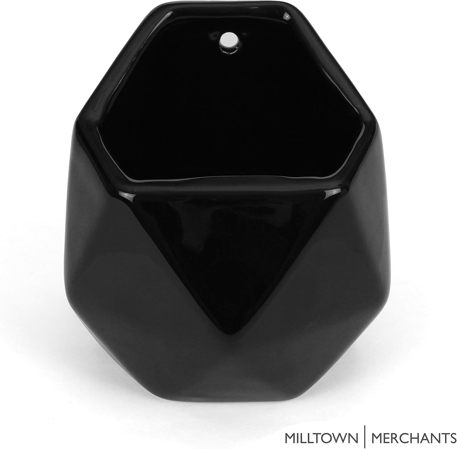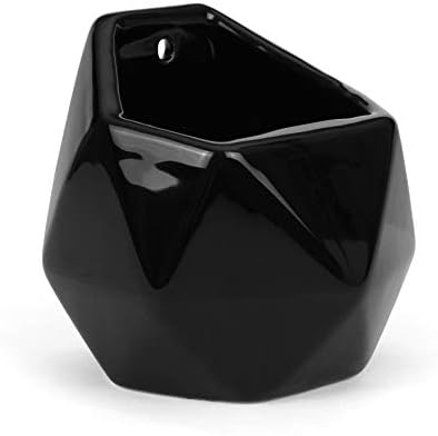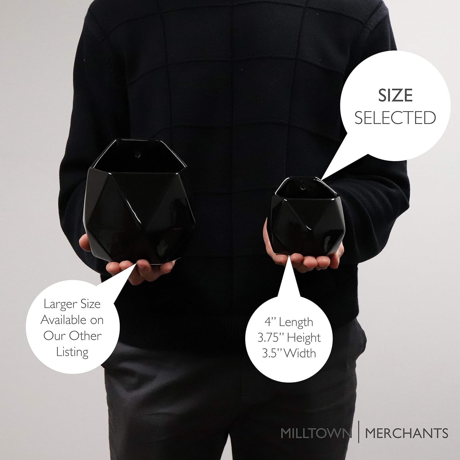 Milltown Merchants Succulent Wall Planter - Black Ceramic Mounted Planter - Succulent Plant Pot - Hanging Vase for Living Wall (1 Pack/Geometric/Black)