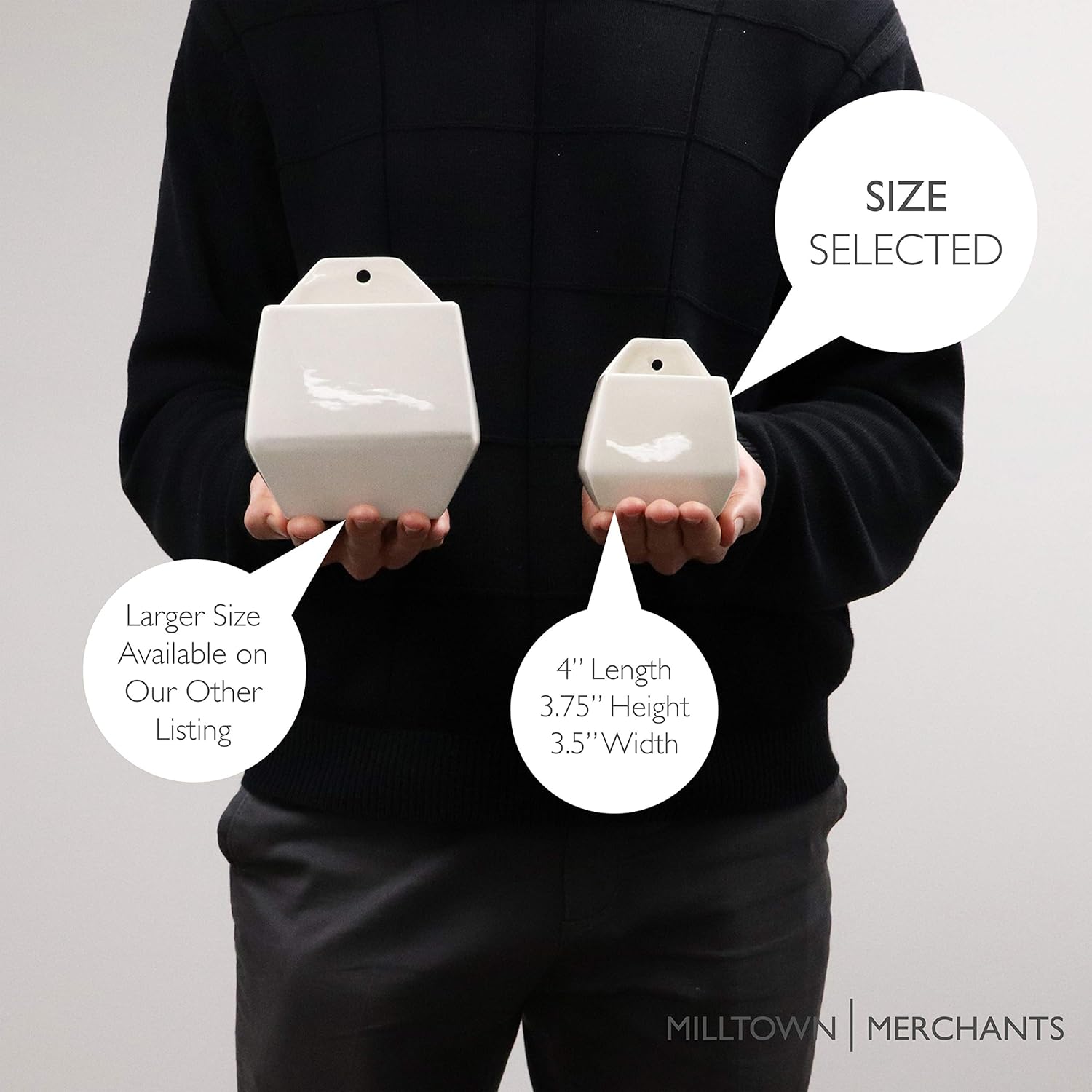 - MODERN COMPACT DESIGN - The versatile design of the Milltown Merchants Ceramic Wall Planters allows for them to be wall mounted or stand upright on a shelf or desk. The removable drainage plug accommodates both real and artificial plants. It also makes a great holder for pens, pencils, and other accents in a home office.
