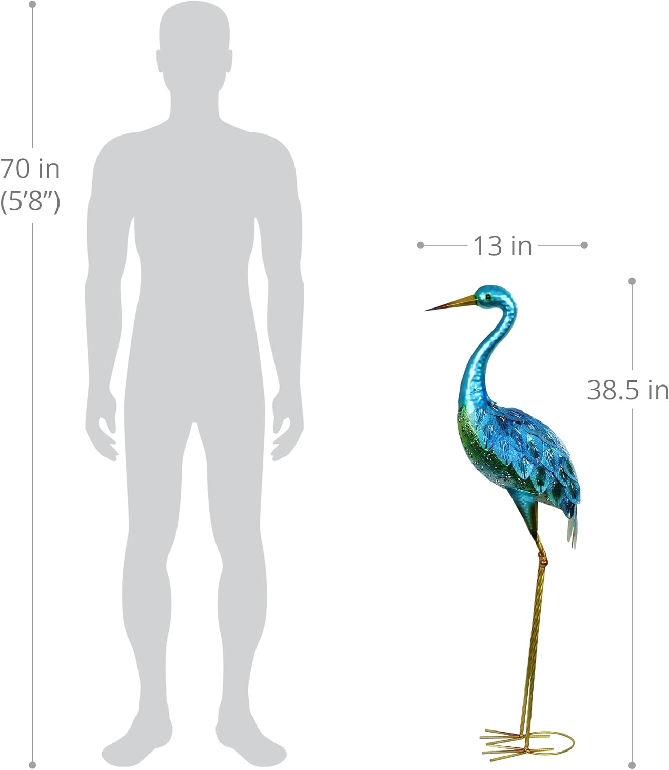 - STANDING CRANE GARDEN STATUARY: Add a touch of majestic beauty and whimsical decoration to your home garden decor with our beautiful metallic blue crane figurine. This breathtaking crane garden ornament stands 38 inches tall, is meticulously crafted with metal and hand painted, and our decorative birds are brimming with charm and personality that provides a warm welcome to your guests