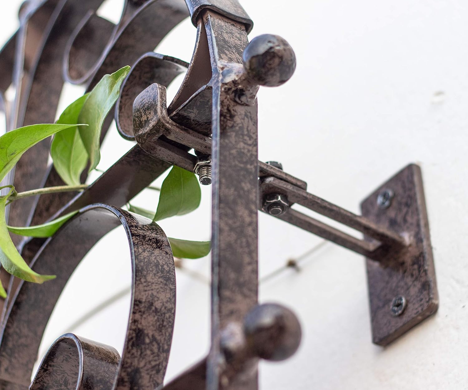 - This listing includes: 1 trellis complete with attached ground spikes, plants not included and 1 wall mounting bracket set. Each bracket set includes 4 trellis brackets and each bracket comes with 2 lag bolts for anchoring into solid wood, 2 regular bolts and 4 nuts. Brackets are metal with charcoal brown powder-coat finish and adjustable from 4 to 6 inches. Brackets are approximately: 4 inches by 2 inches by 4.5 inches