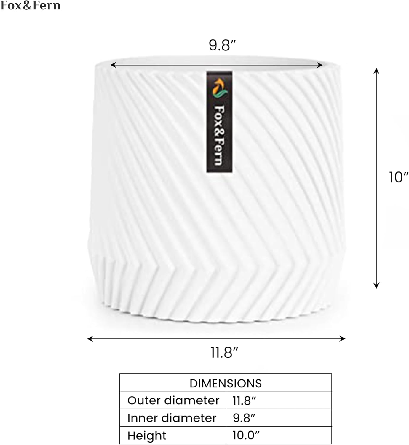 Fox & Fern Large 12 Inch Planter with Drainage Plug — Premium Polystone White Plant Pot; Modern Planter with 3D Texture and Ceramic Finish; 12 Inch Pots for Plants Indoor & Outdoor