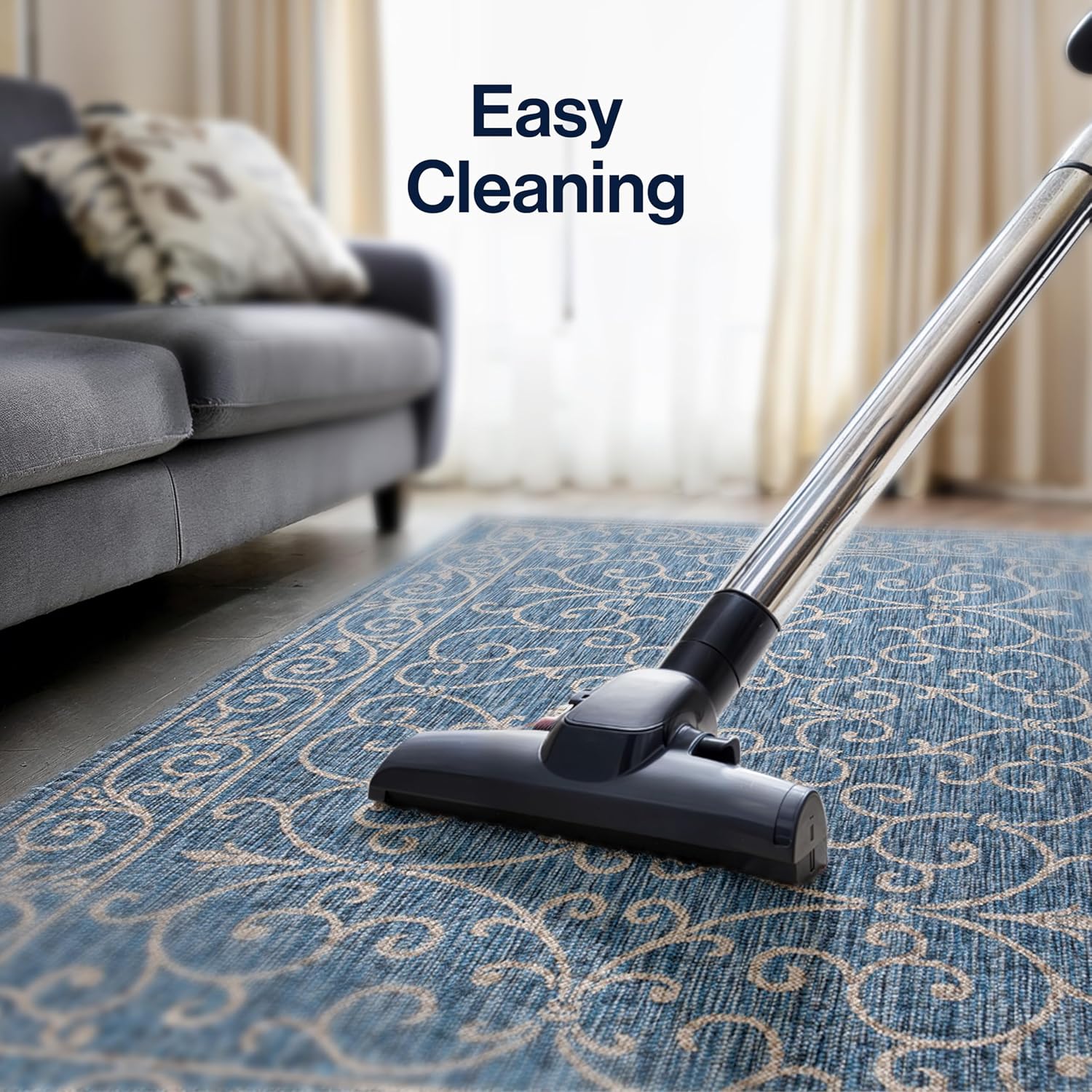 - STAIN-RESISTANT AND PET-FRIENDLY: This rug is made from synthetic fibers that resist UV fading; The pet-friendly low-pile construction won’t accumulate dirt, and spills clean up easily; It’s been machine-woven so the rug fibers will stay put