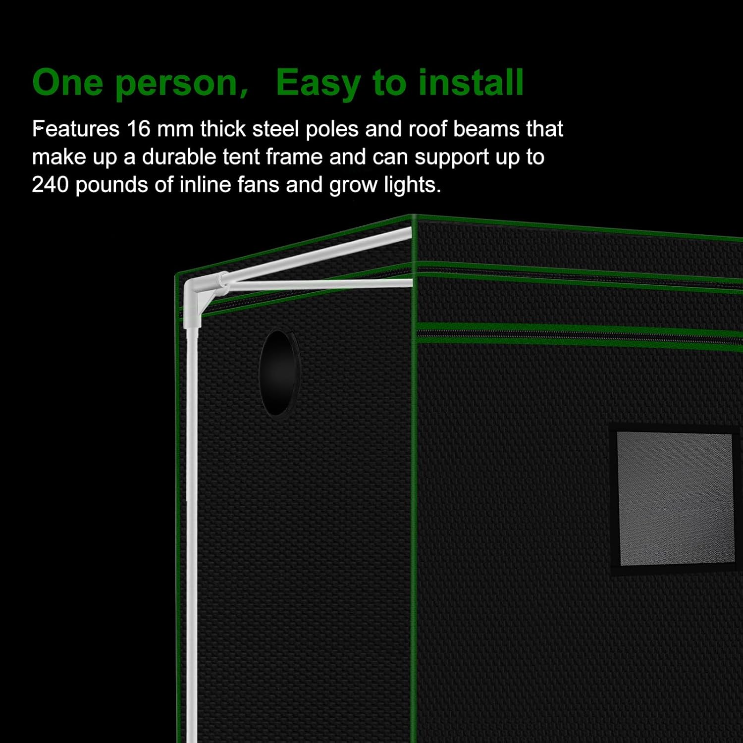 - 【High Quality】: This grow tent measures 96"x48"x80'' and is lined with a highly reflective waterproof polyester film and 600D double-stitched canvas. It is perfectly light-proof and tear-resistant, and has excellent durability, safety and stability. It can withstand long-term use to ensure proper temperature and make plant healthy growth.