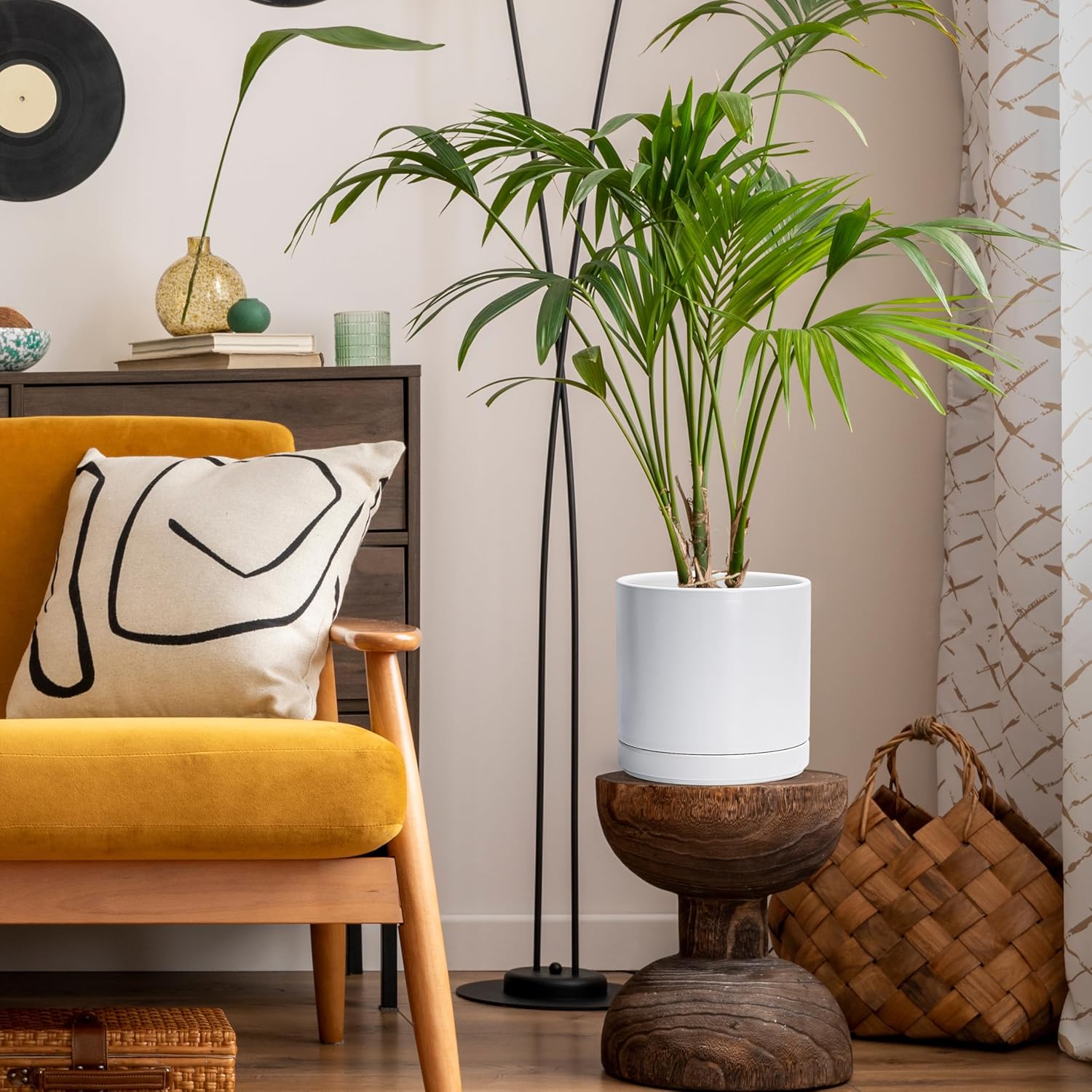 D'vine Dev 6.5 Inch & 8.2 Inch Ceramic Planter Pots for Plants with Drainage Hole and Saucer, Medium Plant Pots Set, White, 94-G-M-1