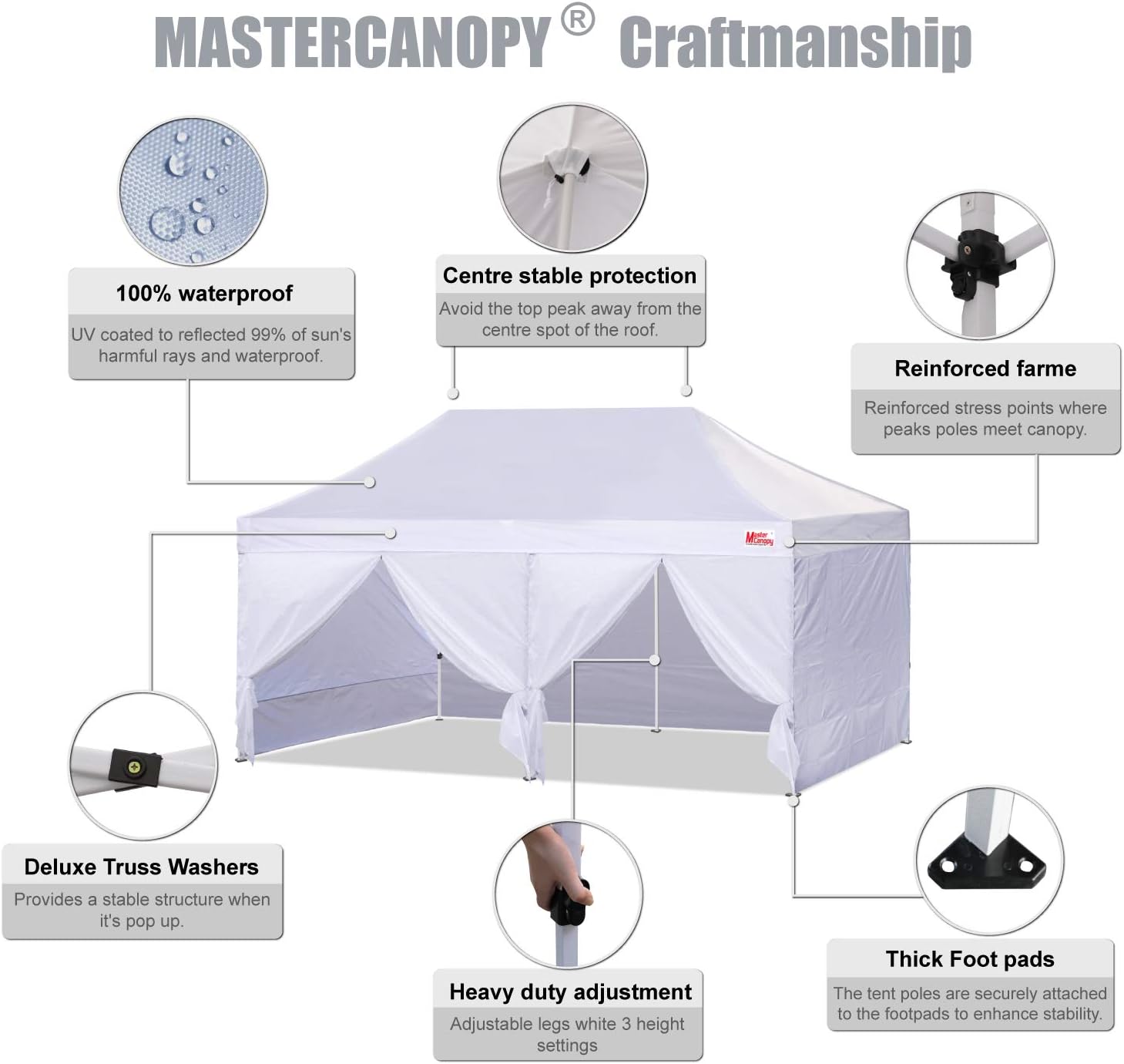 MASTERCANOPY Heavy Duty Pop-up Canopy Tent with Sidewalls (10x20,White)