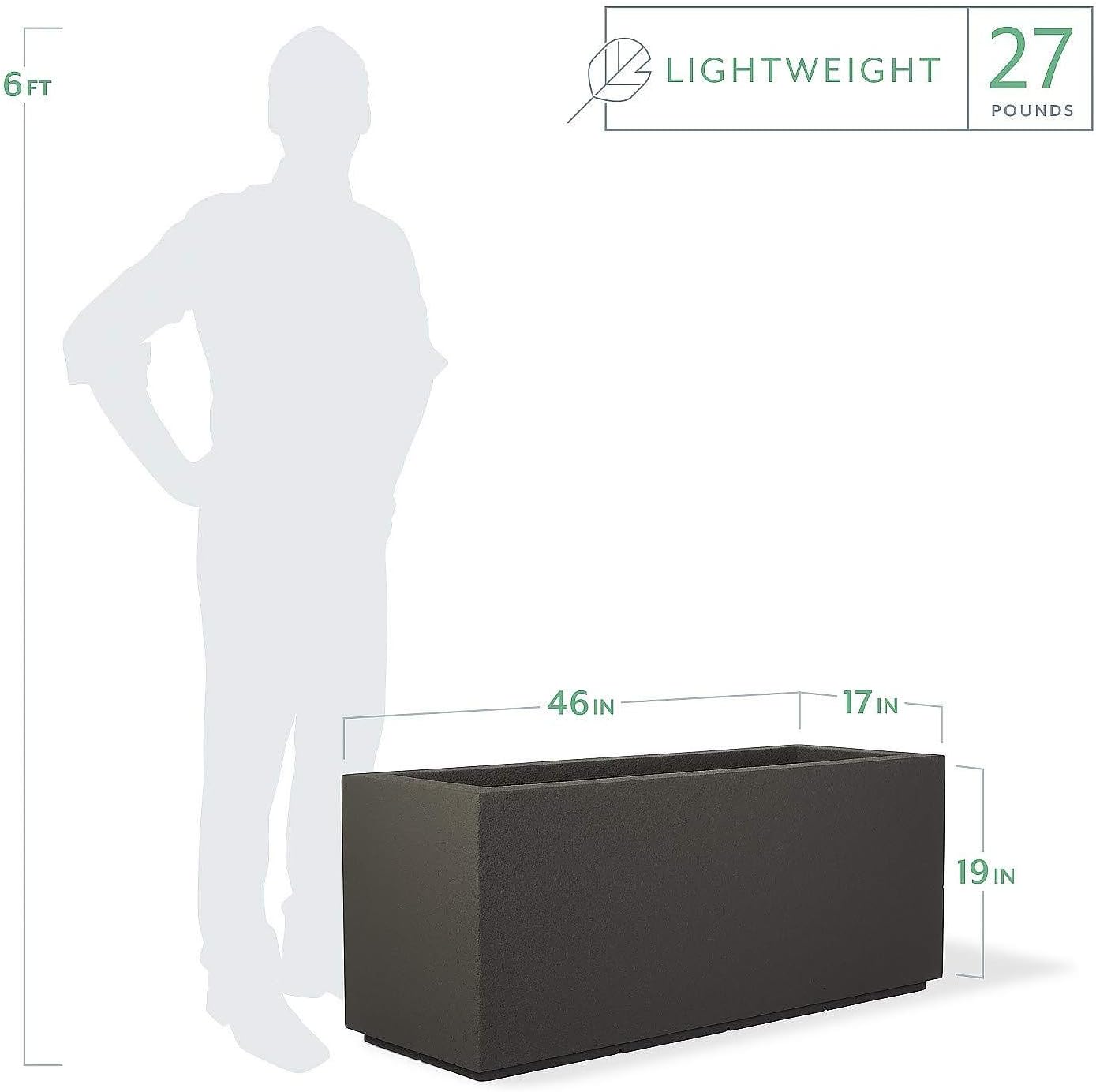 PolyStone Milan Tall Modern Outdoor/Indoor Rectangular Trough Planter, 46" L X 17" W X 19" H, Lightweight, Heavy Duty, Weather Resistant, Polymer Finish, Commercial and Residential (Slate Gray)