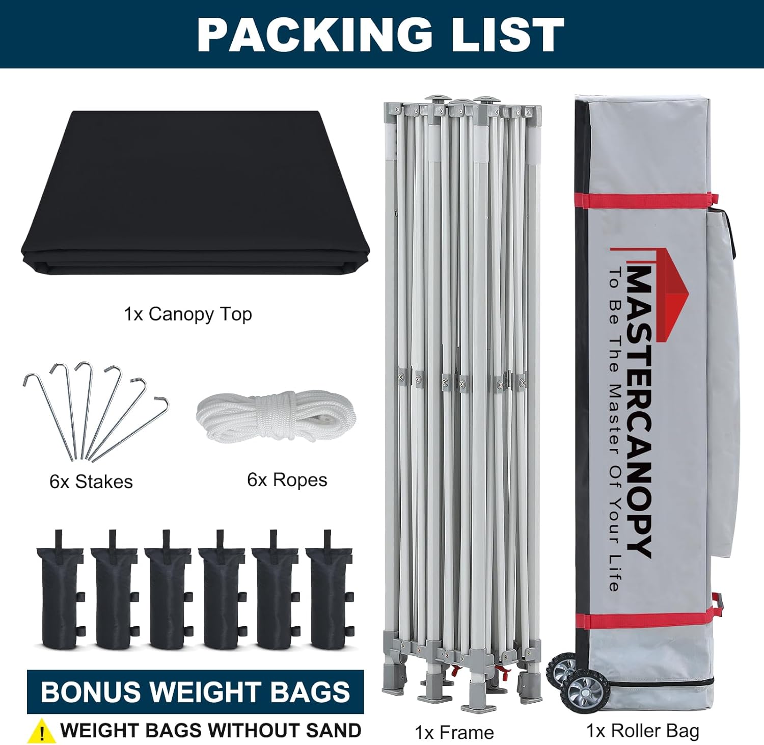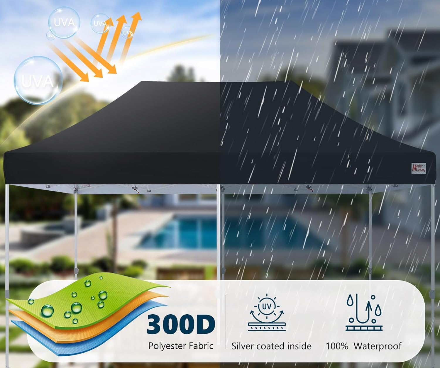 - ✅Large Space: 10 x 20 Pop Up Canopy with straight legs provides a true 200 square feet shade. Big enough for about 6-10 people to sit under it. Center height is 132 inch. Suitable for market stalls, parties, picnics or any outdoor events. MASTERCANOPY commercial canopy tent is suitable for both sunny and rainy days.