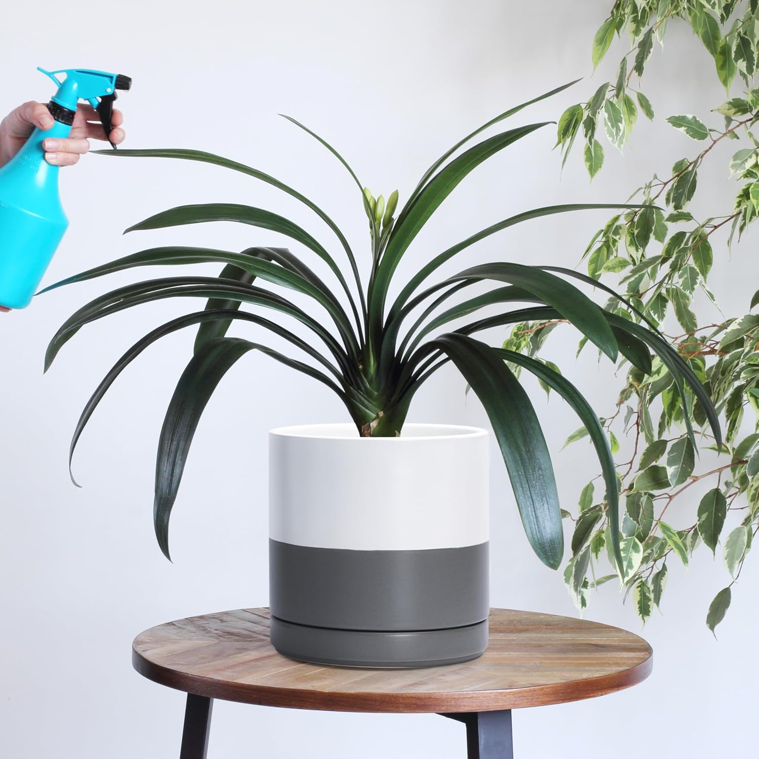 D'vine Dev 6.5 Inch & 8.2 Inch Ceramic Planter Pots for Plants with Drainage Hole and Saucer, Medium Plant Pots Set, White/Speckled Grey, 94-G-M-6
