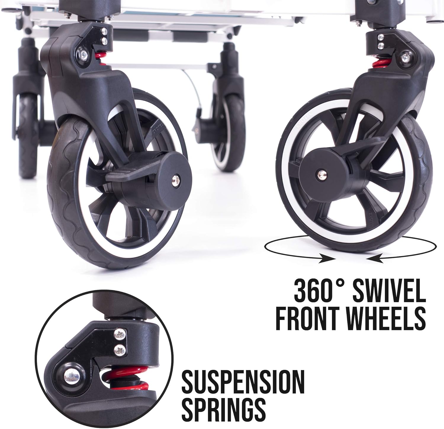 - ✔️ PUSH OR PULL: The wagon is designed to be pushed or pulled behind you - the front wheels have a 360-degree swivel allowing you to maneuver around obstacles. The sturdy construction can take on all terrains including dirt, pavement, grass, or sand.