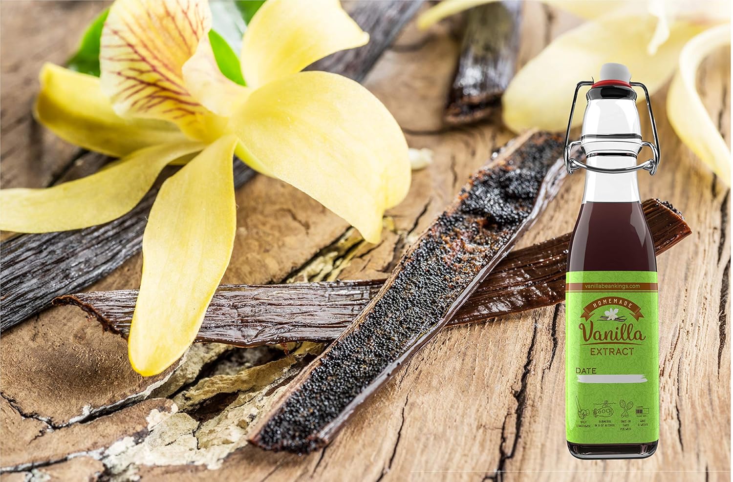 Homemade Vanilla Extract Kit | DIY | 1 Ounce of Premium Organic Madagascar Grade A Vanilla Beans 6-7 inches (Appoximately 8-10 Beans) with 8.5 oz Swing Top Glass Bottle
