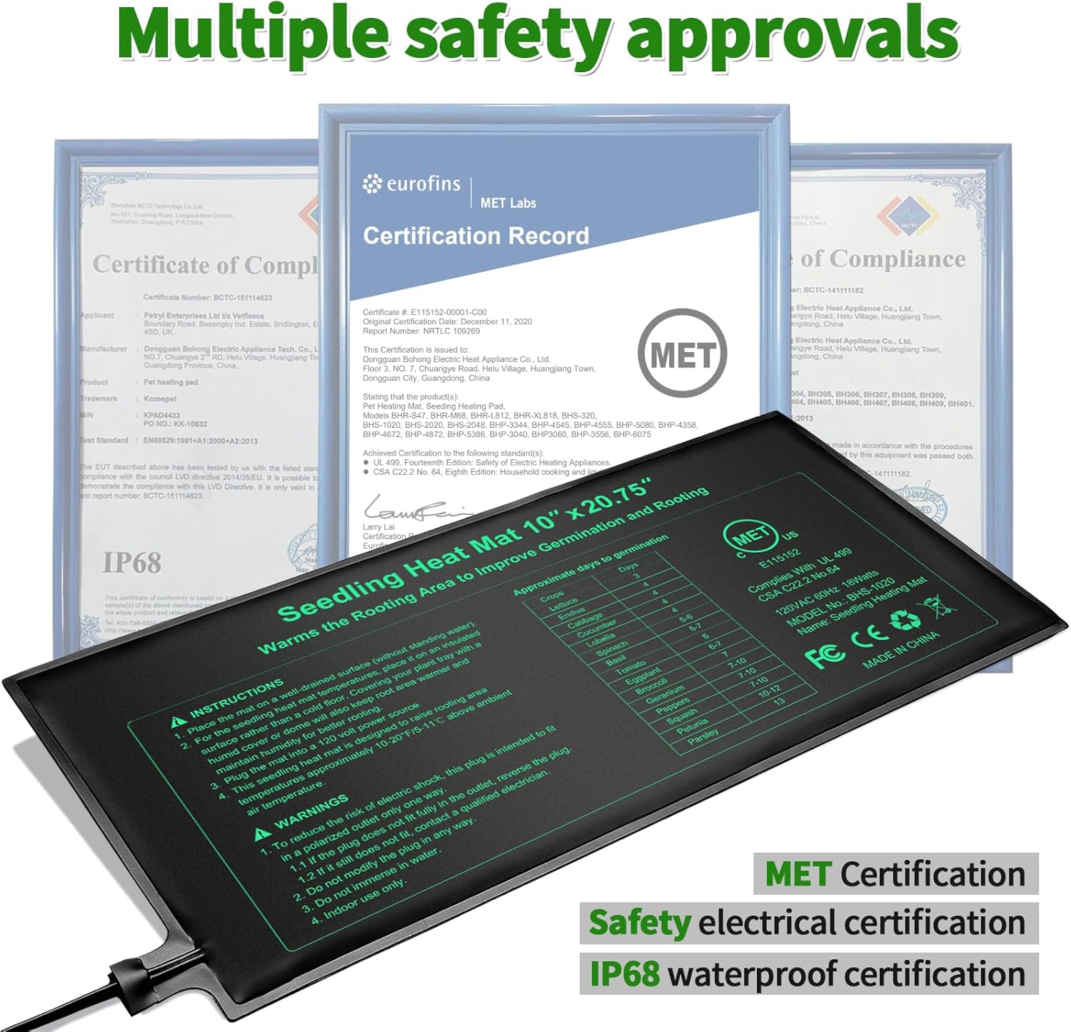 - 【MET STANDARD AND HIGH QUALITY】:Bestio seedling heat mat has MET certification and IP67 waterproofing,which is more secure and reliable.It is against splashes, showers and sprays and also easy to clean by rinsing and wiping.