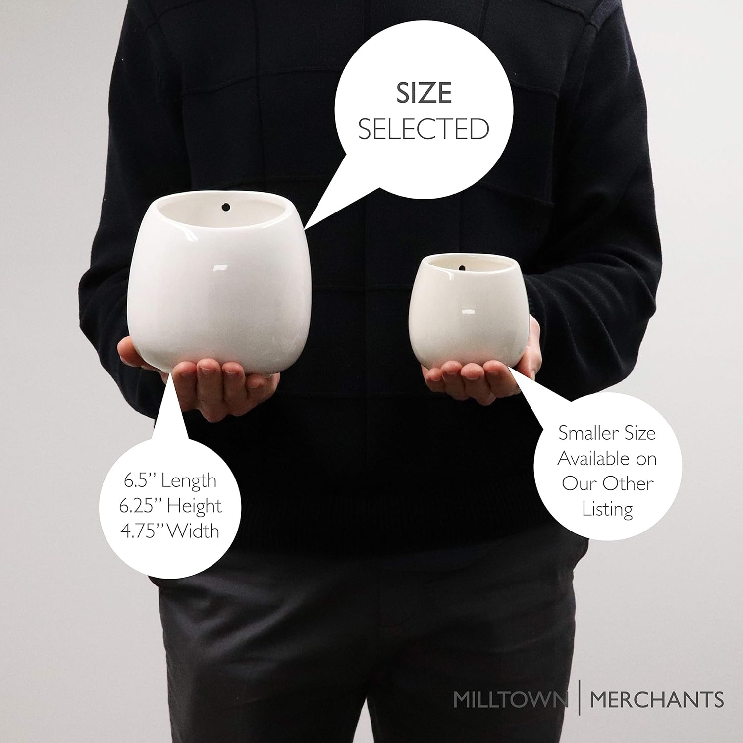 - MODERN COMPACT DESIGN - The versatile design of the Milltown Merchants Ceramic Wall Planters allows for them to be wall mounted or stand upright on a shelf or desk. The removable drainage plug accommodates both real and artificial plants. It also makes a great holder for pens, pencils, and other accents in a home office.