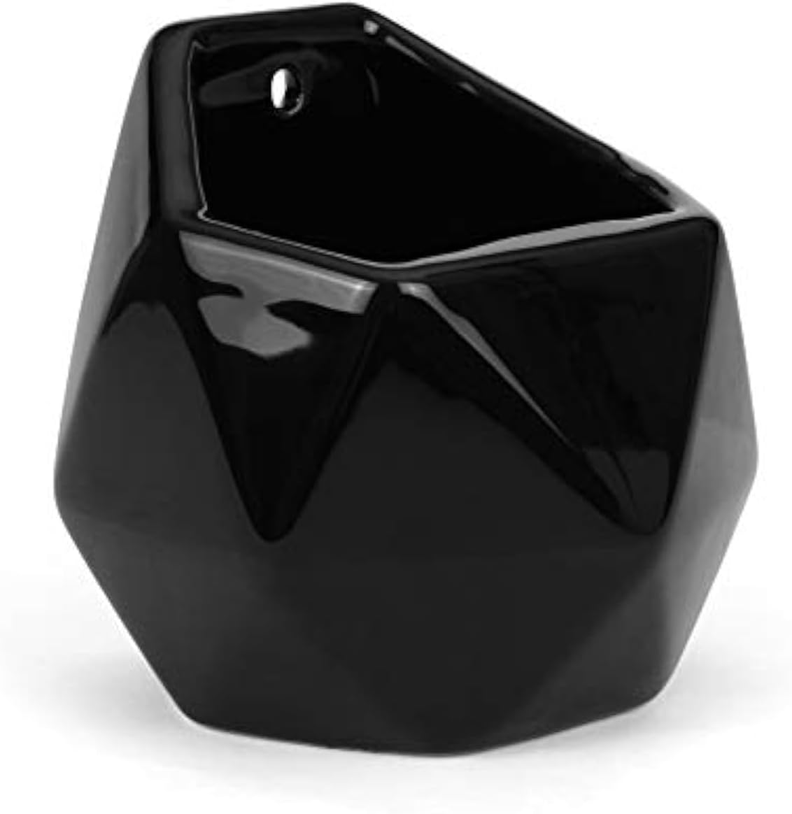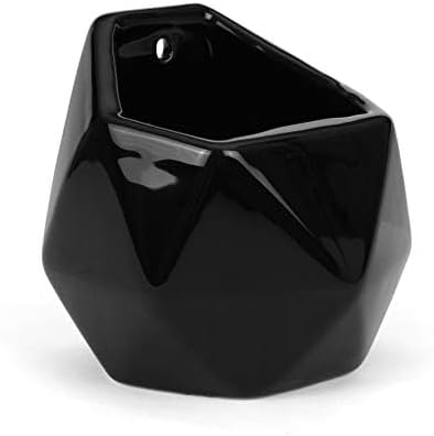 Milltown Merchants Succulent Wall Planters - Ceramic Wall Mounted Planters - Succulent Plant Pots - Hanging Vases (1 Pack/Geometric/Black)
