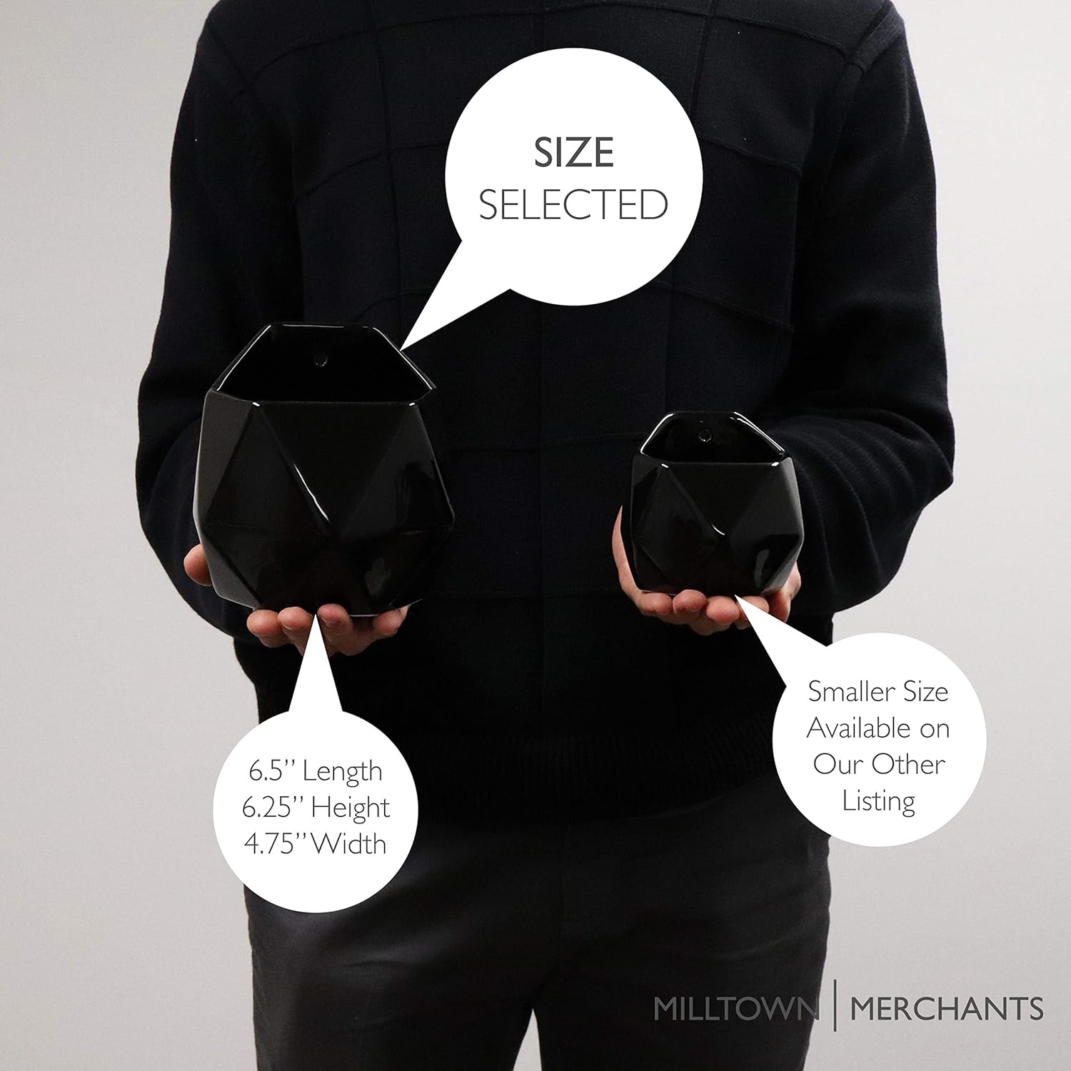- MILLTOWN MERCHANTS HANGING PLANTER - The simplistic design of each Milltown Merchants hanging planter infuses minimalist and contemporary styling to create the perfect floating vase. Our beautiful white and black floating planters offer the ideal contrast for showcasing succulents, greenery, and small plants.