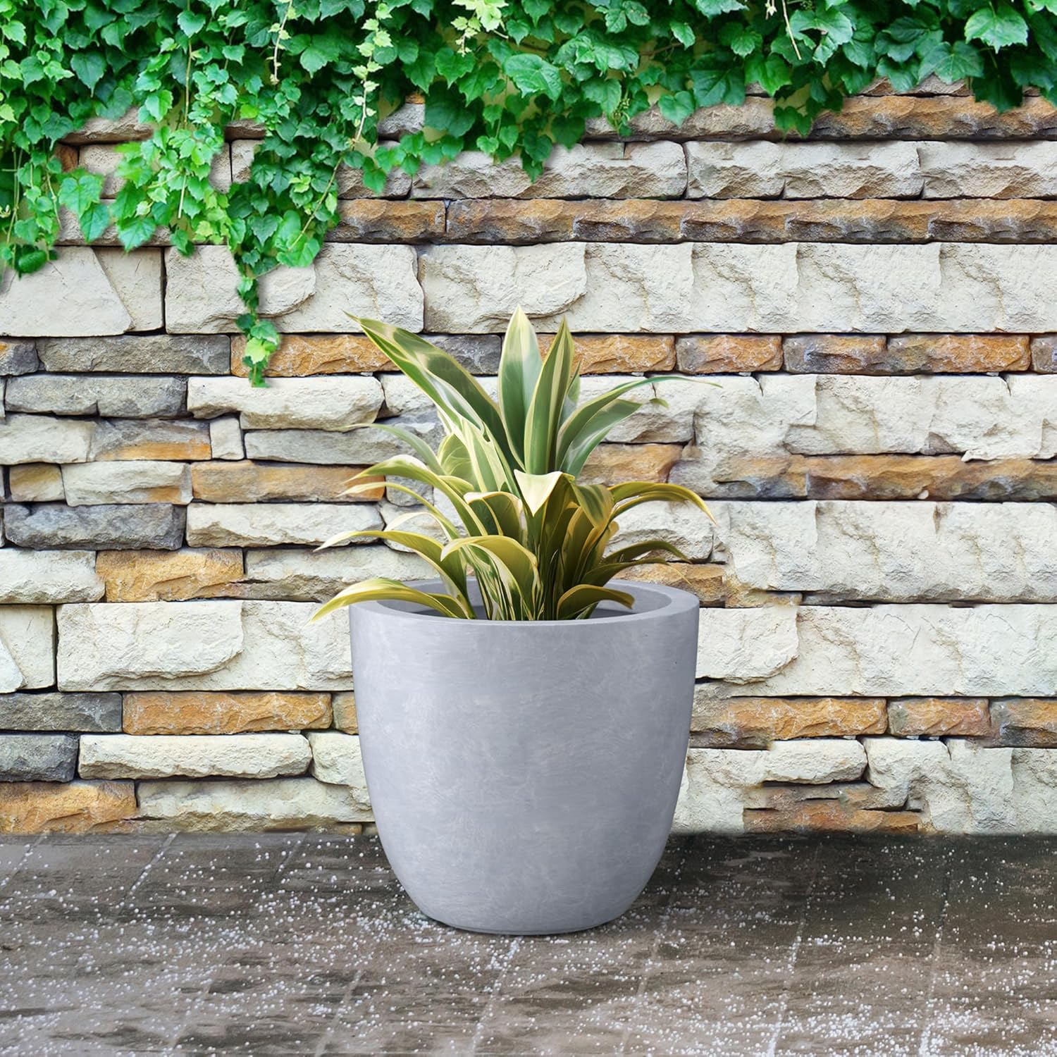 Kante 14 Inch Dia Round Concrete Planter, Indoor Outdoor Large Plant Pot with Drainage Hole and Rubber Plug for Home Patio Garden, Slate Gray