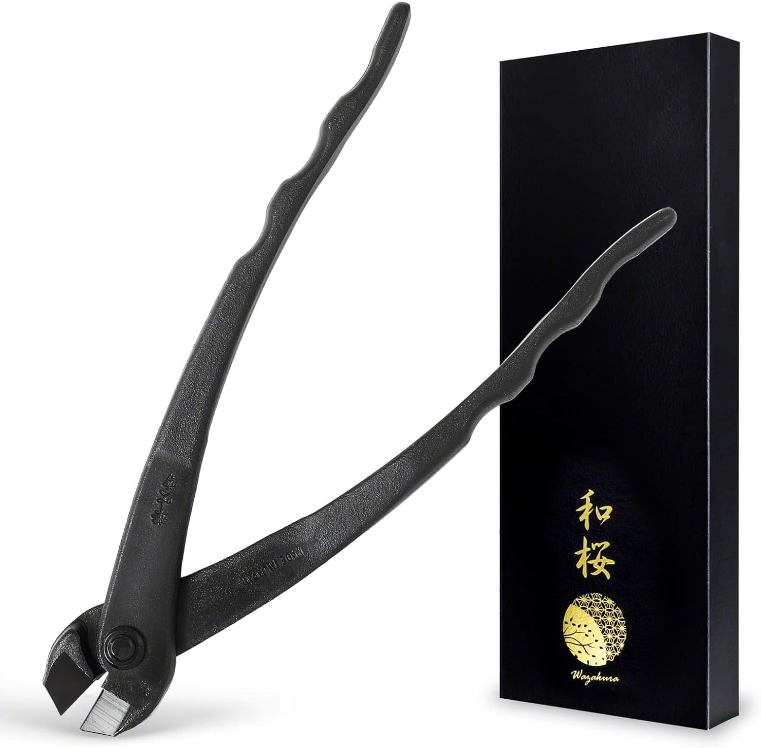 Wazakura Hanafubuki Hand Forged Bonsai Tree Wire Cutter MADE IN JAPAN 7.7inch (195mm), Japanese Garden Tool, Rounded Ends - Black