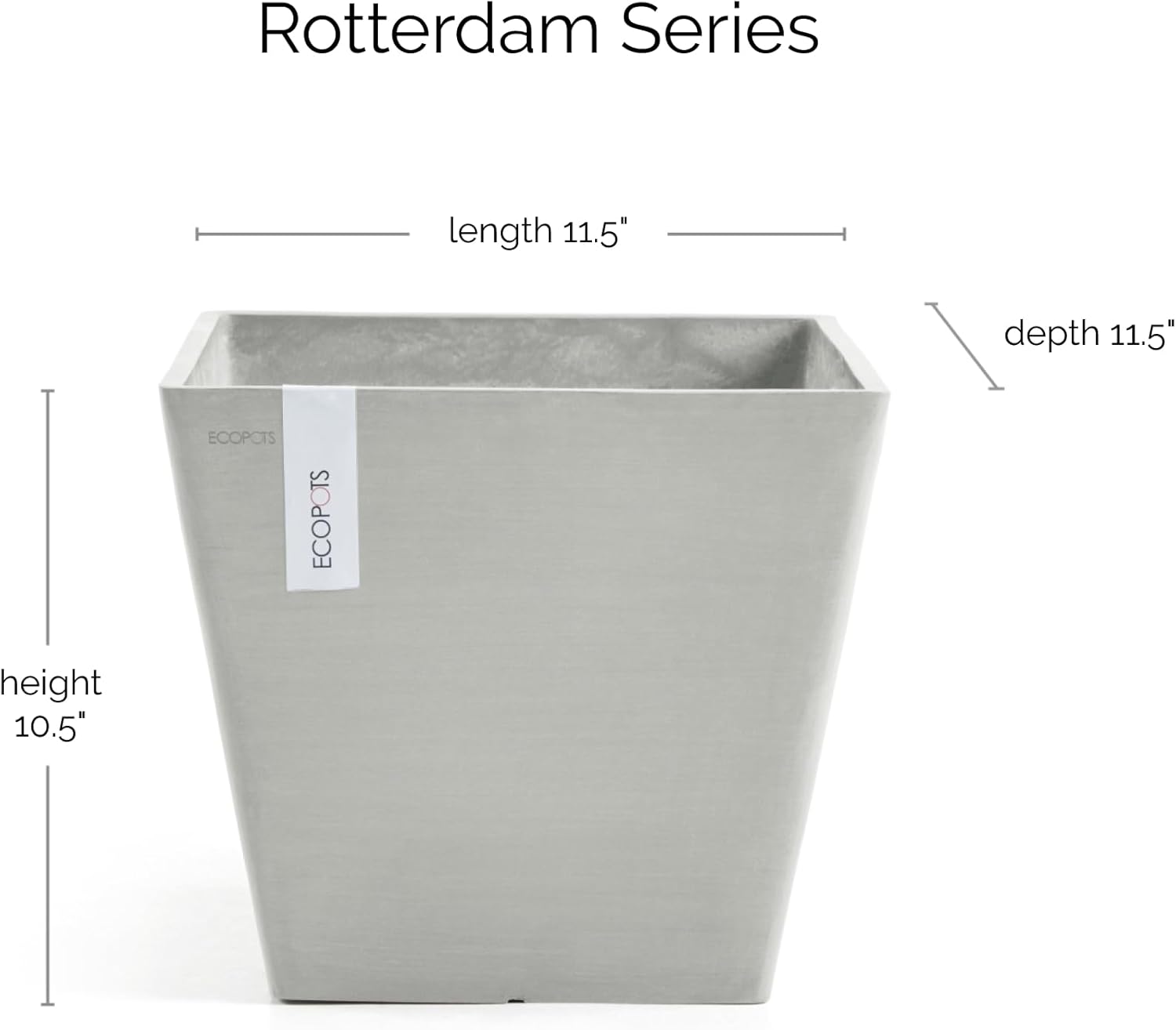 Ecopots Rotterdam Durable Modern Square Indoor/Outdoor Recycled-Based Composite Flower Planter, White Grey, 12"