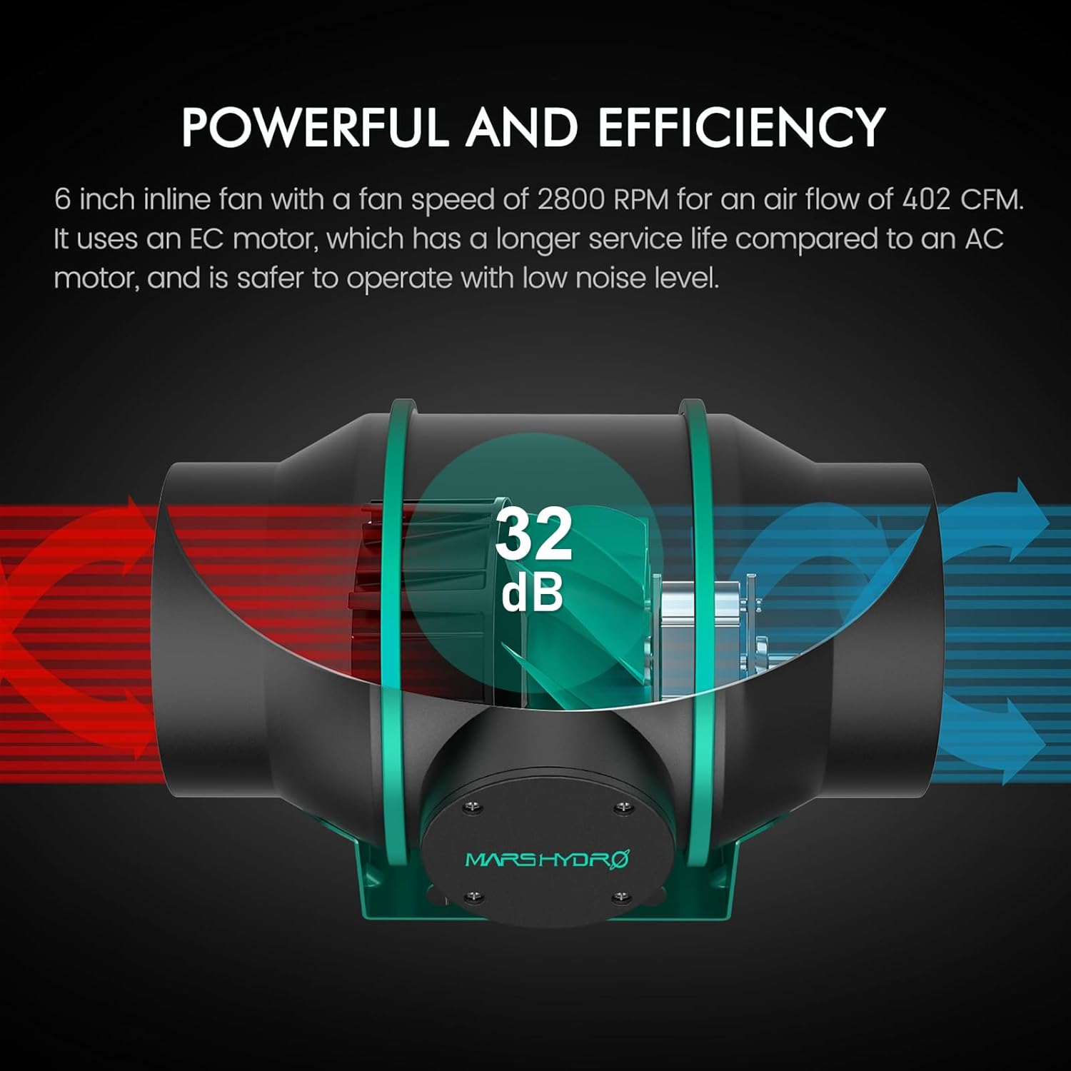 - 【402CFM ADJUSTABLE&EFFICIENT VENTILATION SYSTEM】The inline fan blades have a mixed flow design to provide active air to your growing space, the fan runs at 2800 RPM,adjustable speed from 0 to 100%,and provides 402CFM of airflow. Only 32 dB noise. 1050+ RC 48 Australian Virgin Charcoal with 25ft length flex ducting,effectively filters impurities and odors from the air.