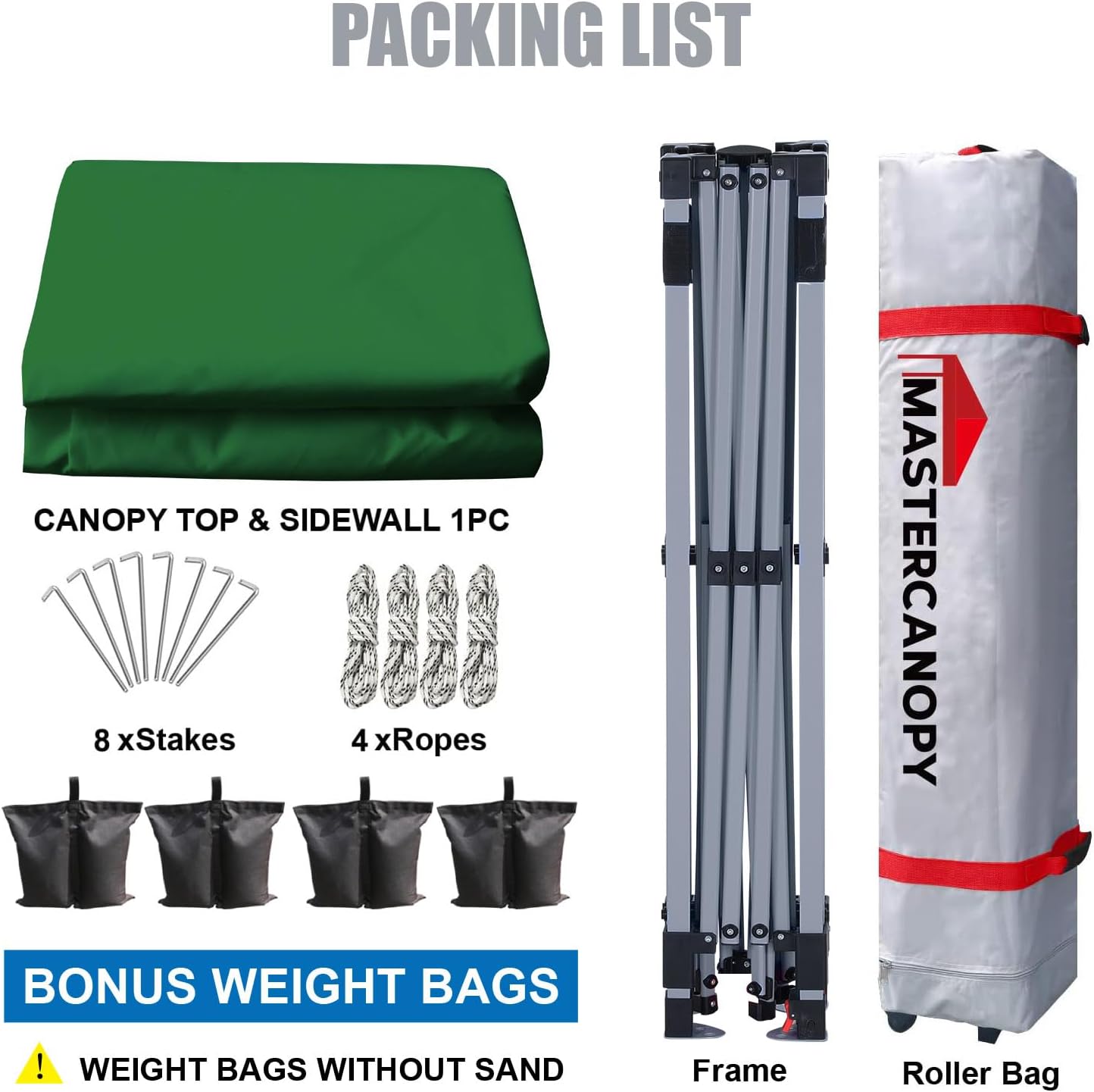 MASTERCANOPY Durable Pop-up Canopy Tent with 1 Sidewall (10'x10',Forest Green)