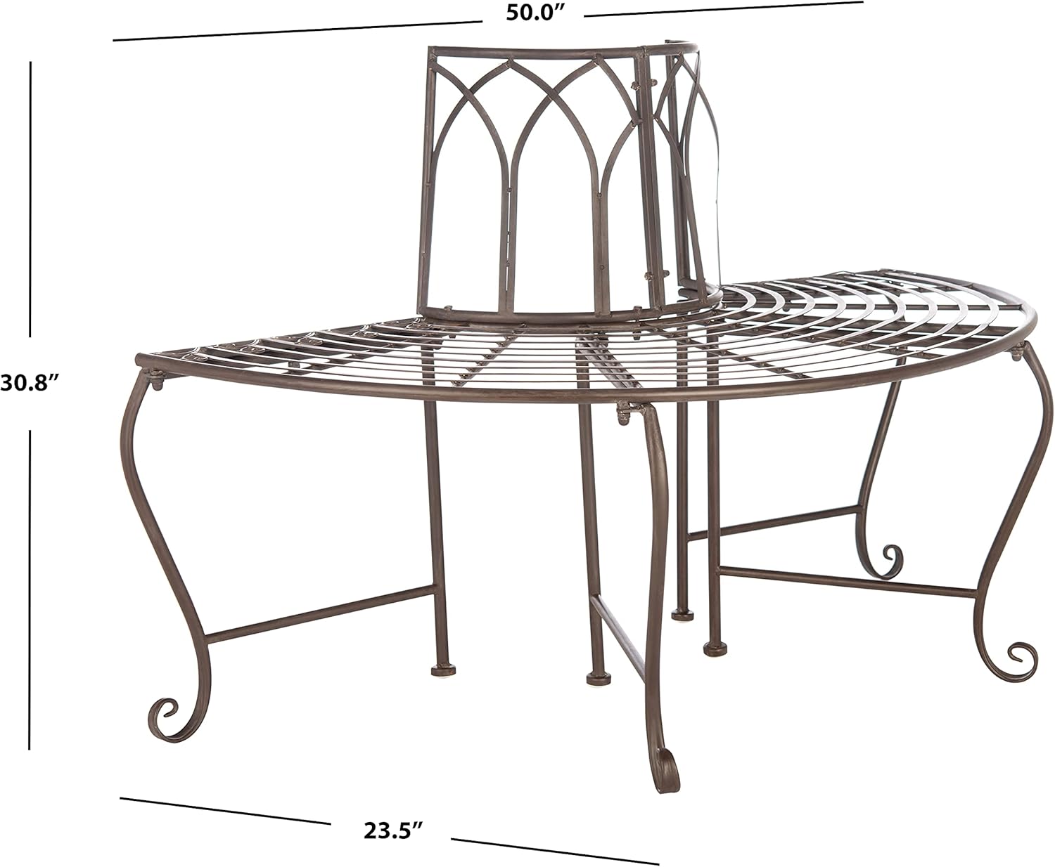 SAFAVIEH PAT5018B Outdoor Collection Abia Rustic Brown Wrought Iron 50-inch Tree Bench