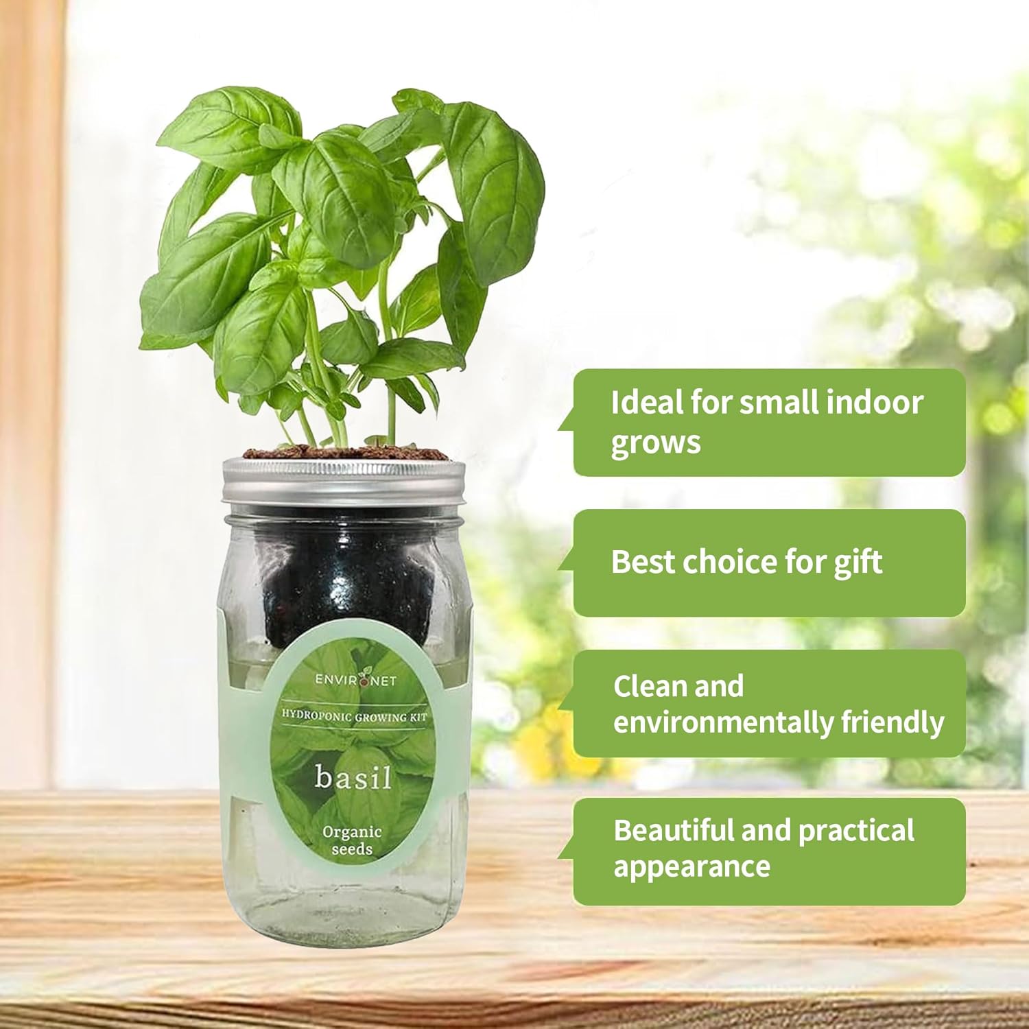 - Beautiful and Safe Home Decor: This artistic herb mason jar can lighten up any home. You can put basil live plant on your windowsill, your kitchen counter or anywhere you like. All the seeds are heirloom, non-GMO organic seeds. Certified organic by CCOF. We promise you can buy this mason jar hydroponics kit with confidence for you and your family!