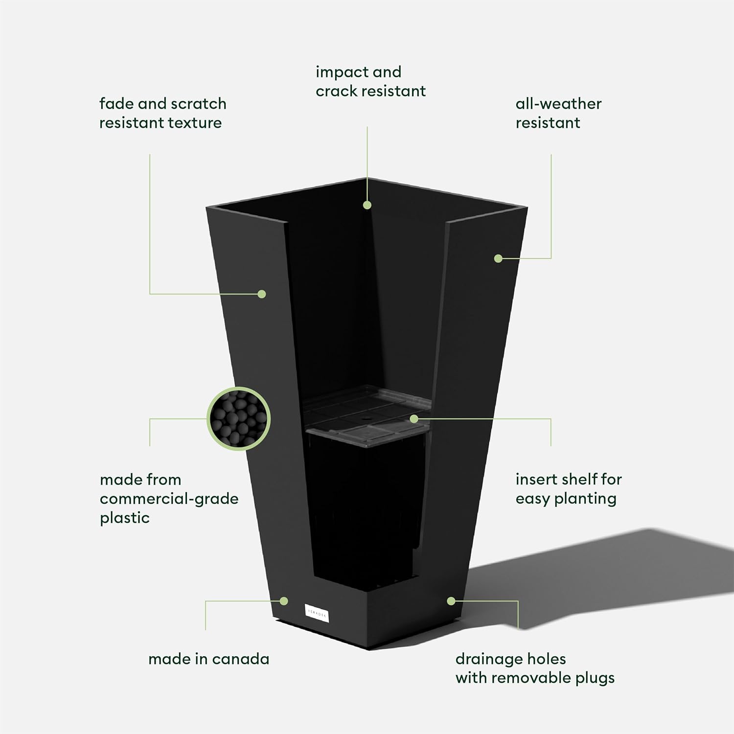 - GARDEN DECOR: Decorate your space with the Veradek Taper planter; Whether you use it as a patio, entrance or railing accent, this strong and sturdy yet lightweight contemporary garden container is the perfect fit with its sharp and modern appeal