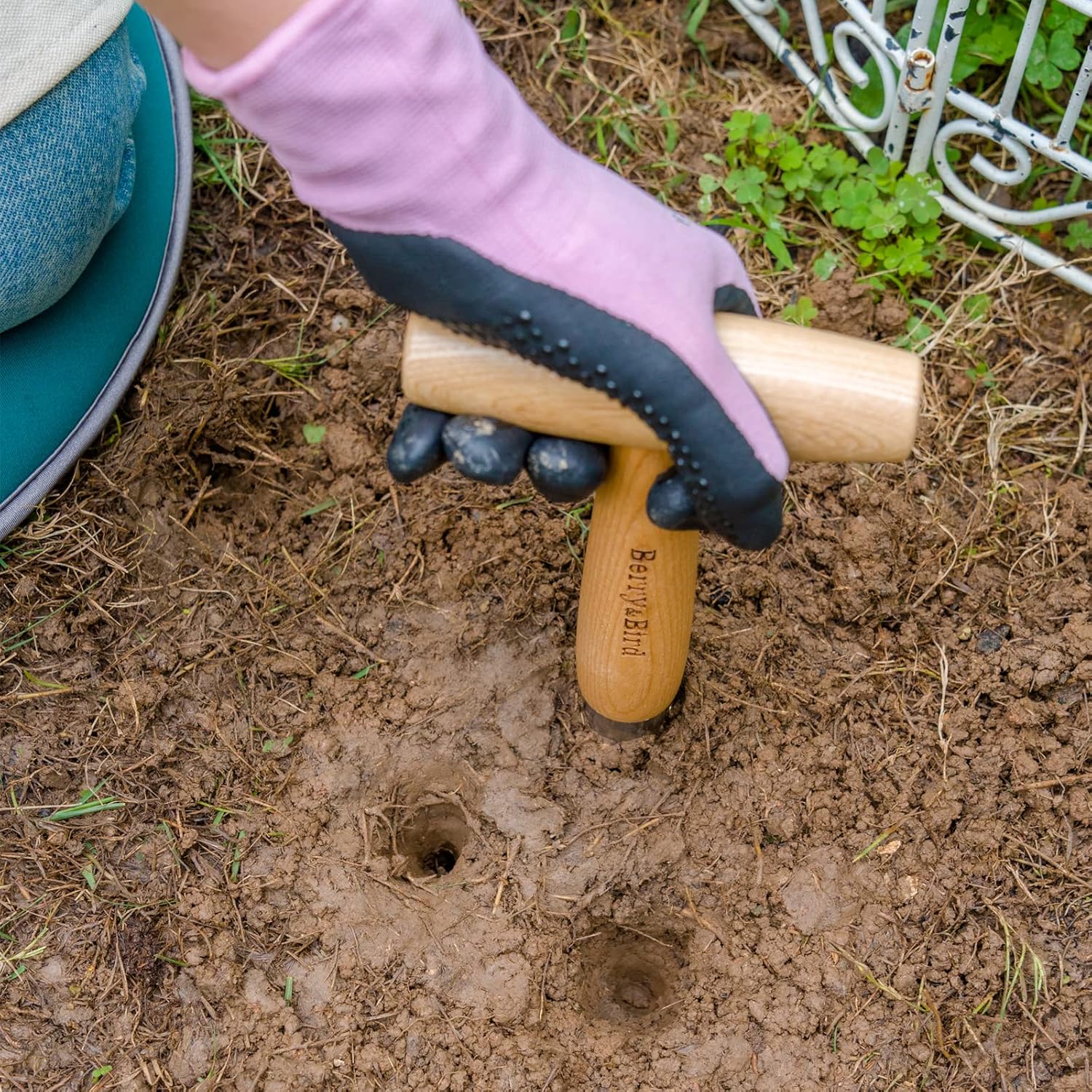 Berry&Bird Hand Dibber, Stainless Steel Sow Dibbler with Wood Handle, Garden Hole Punch Dibbler Tool for Planting Seeds & Bulbs, Hand Held Bulb Planter for Planting Flowers Tulips, Daffodils, Dahlias