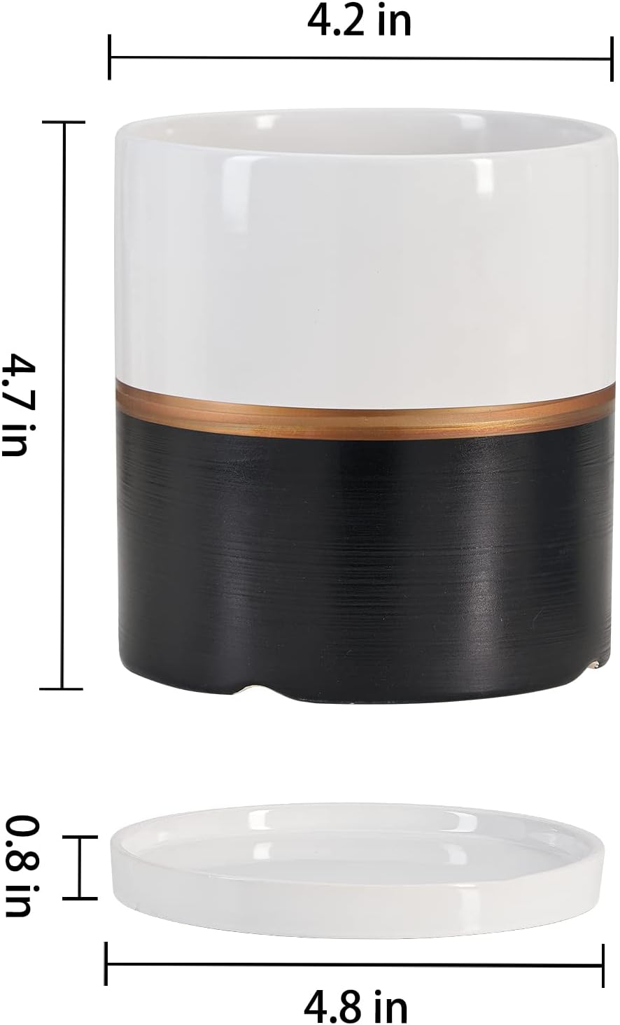 Ekirlin 4 inch Plant Pot - Ceramic Flower Planters Indoor - Modern Succulents Containers with Drain Hole Saucer, Decorate Home, Office & Outdoor (Black)