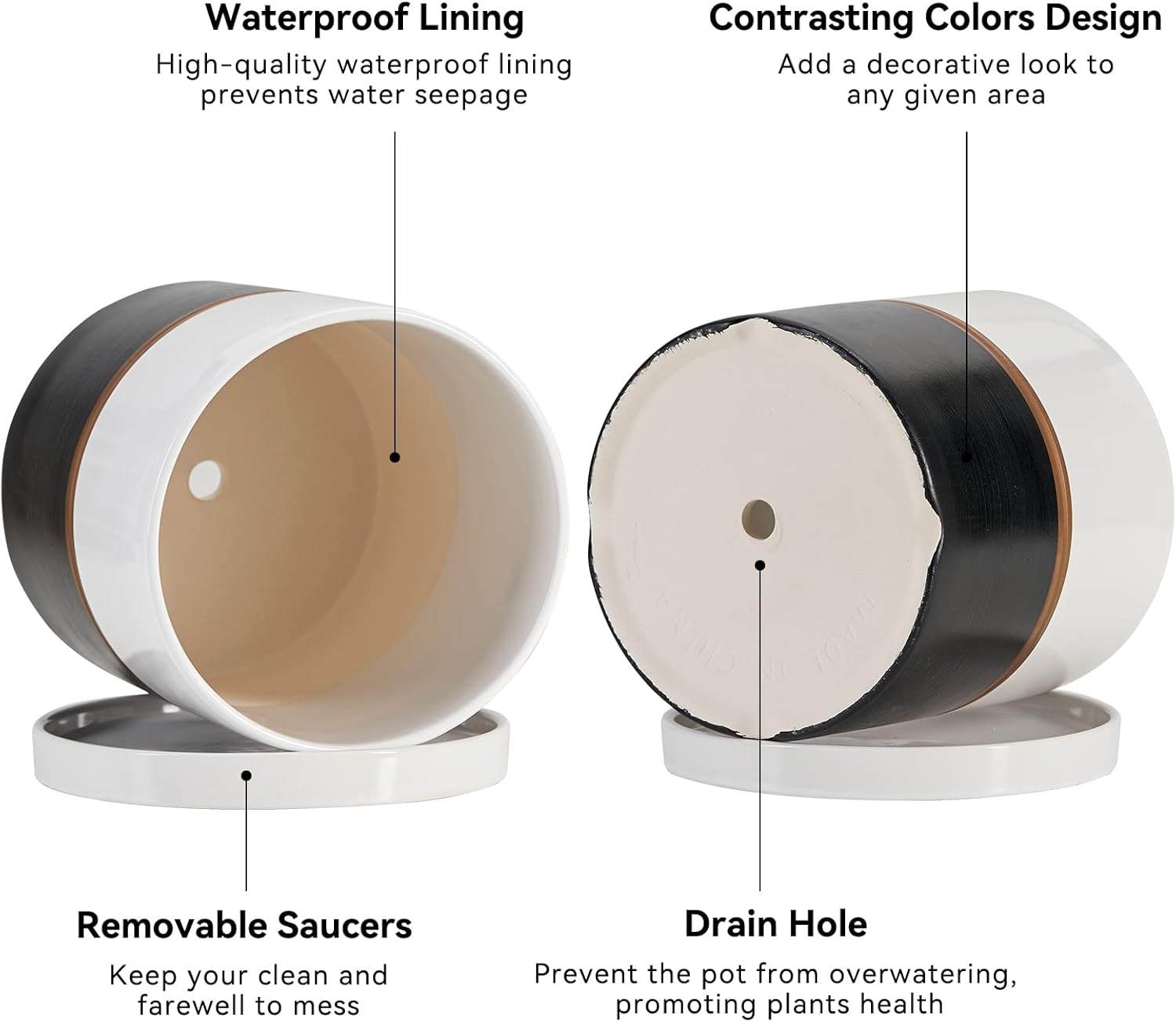- 【Premium Ceramic Material】 Ekirlin plant pots are stoneware baked at high temperatures, so they can withstand extreme temperatures. Manufactured through appropriate synergy between traditional manual techniques and ergonomics, from the top to the bottom, these flower pots show elegant and natural lines