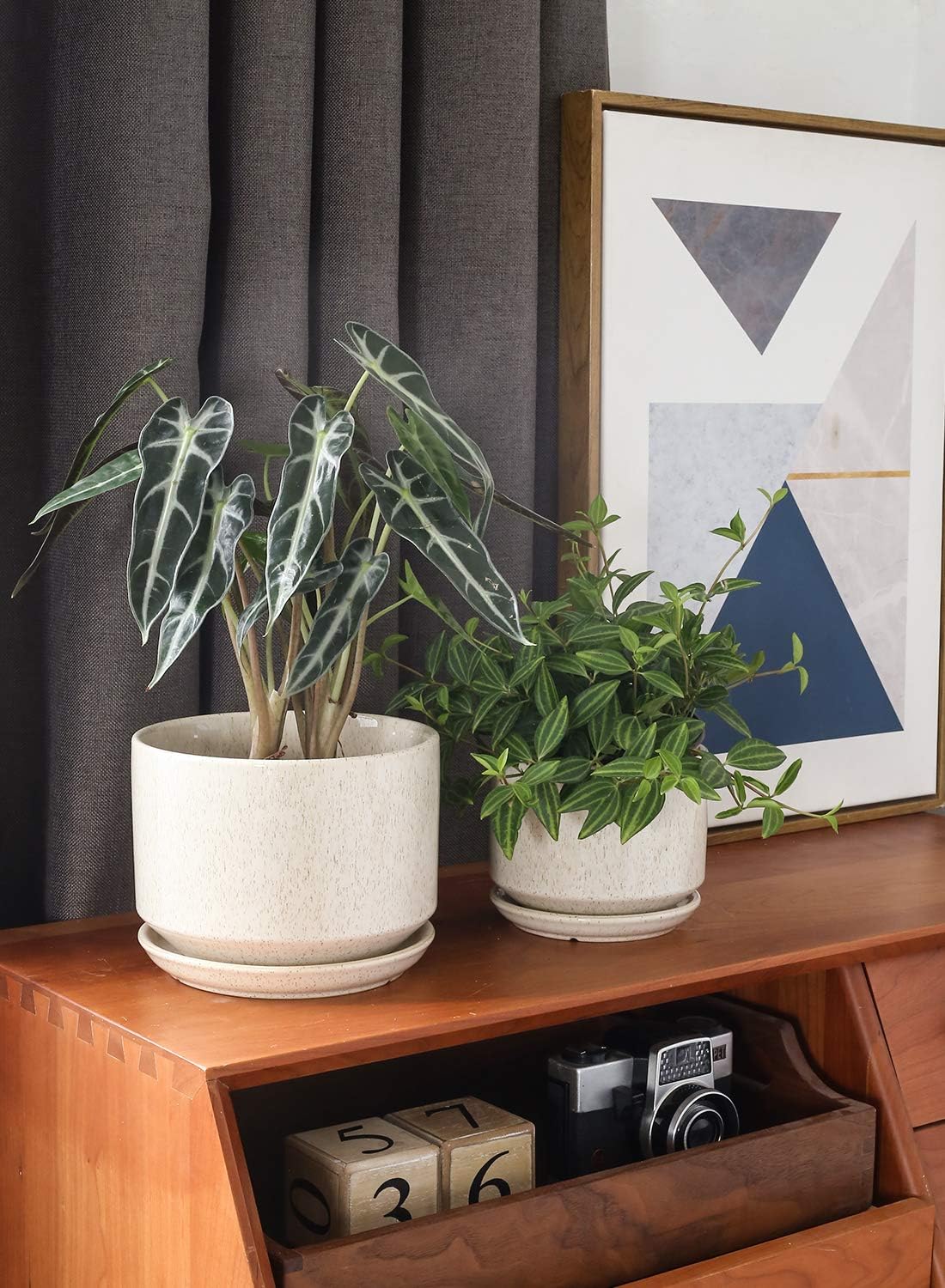 - Contemporary Style: These elegant and modern pots fit into any decor; Great for decorating windowsill, tabletop, shelf, bedroom, kitchen, garden, and outdoor patio; Classic ceramic planters for indoor plants with good becoming tray, easy and elegant wax modern design with different color endings