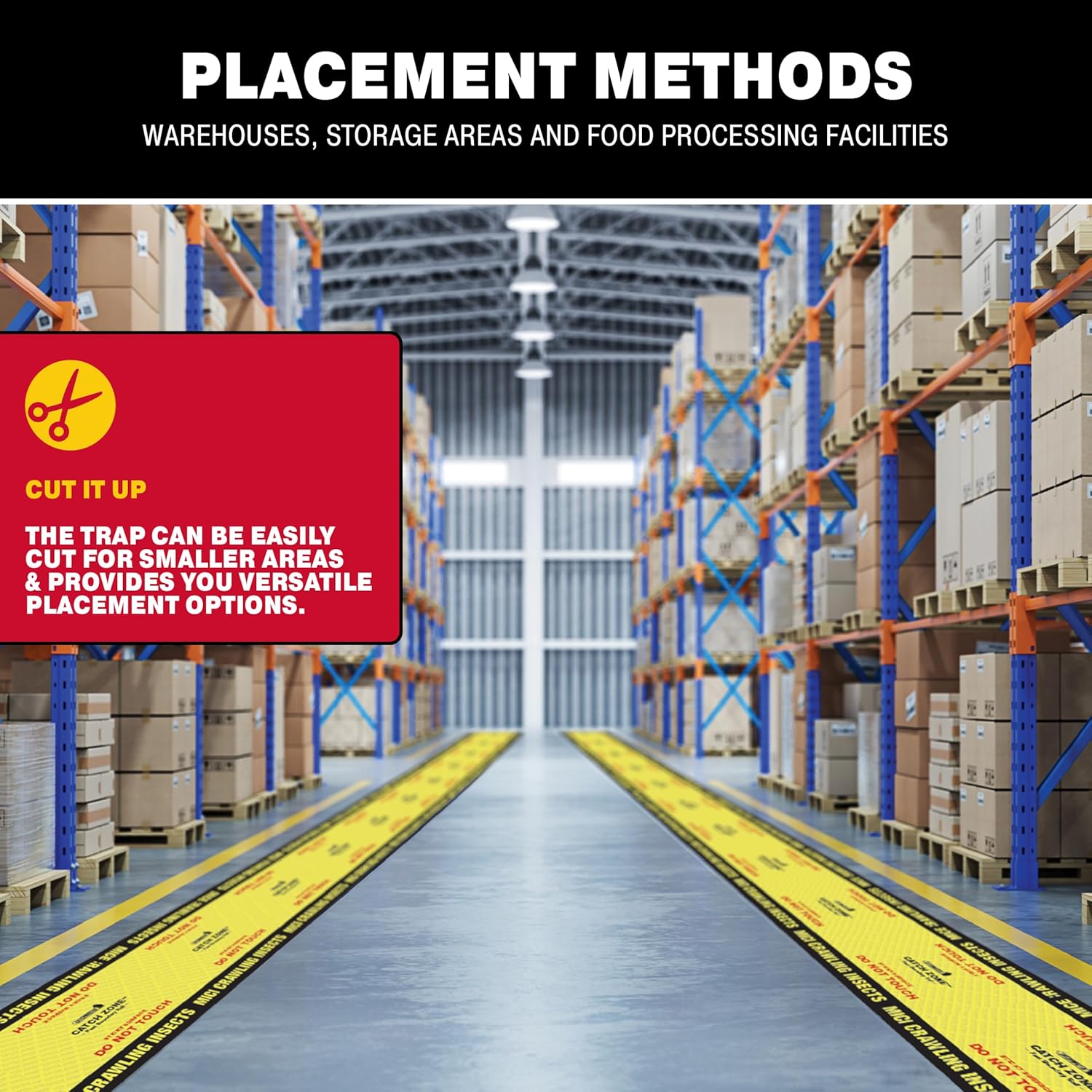 - PROTECT STORAGE AREAS: Crawling Insect and Pest Boundary Roll glue traps are intended for use without insect or mouse bait. Use the bug catcher indoor in warehouses, storage areas, food processing facilities or any sensitive area, especially pallets. The sticky traps for bugs are compatible with insect attractants and pheromones for targeting specific pests.
