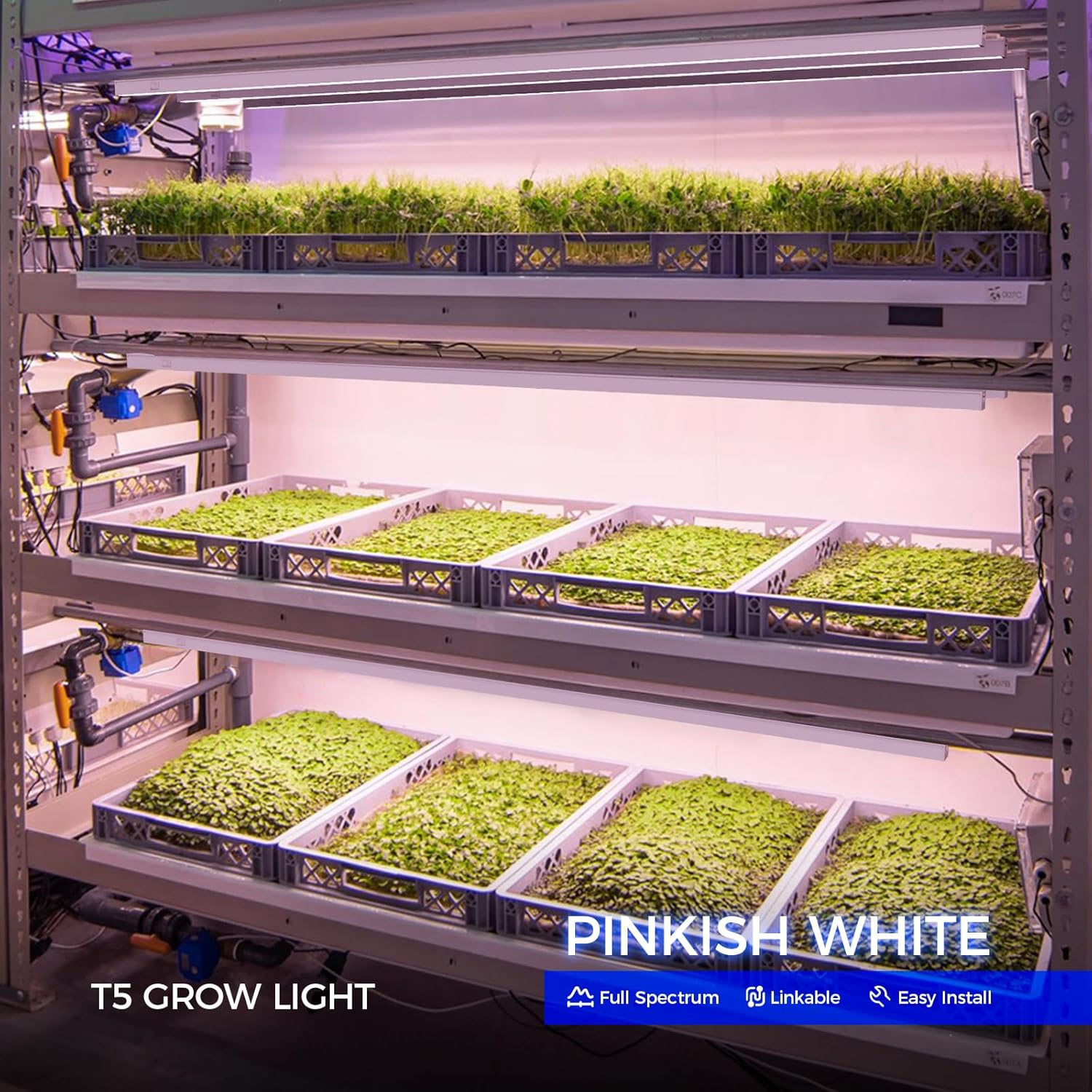 - Full Spectrum (Pinkish White Color) - Barrina T5 grow lights 4ft provide indoor plants with full-spectrum sunlight replacement. We provide the most reasonable grow light wave based on the ratio of the absorption of the plant