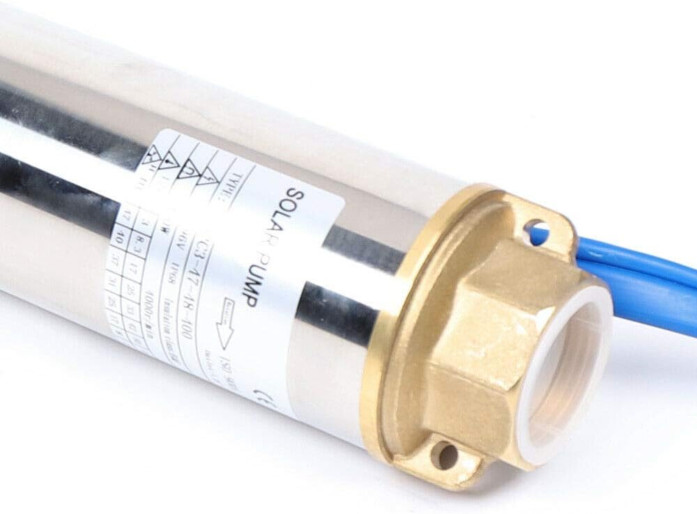 - ăSUBMERSIBLE PUMPăDeep well submersible solar water pump, made of high quality 304 stainless steel, corrosion resistance, heat resistance, high temperature resistance. Alloy mechanical seal, longer working life and high reliability. High lift, large flow, small size, easy to carry. Suitable for using in ships, fishing boats, fish ponds, agricultural irrigation and etc.