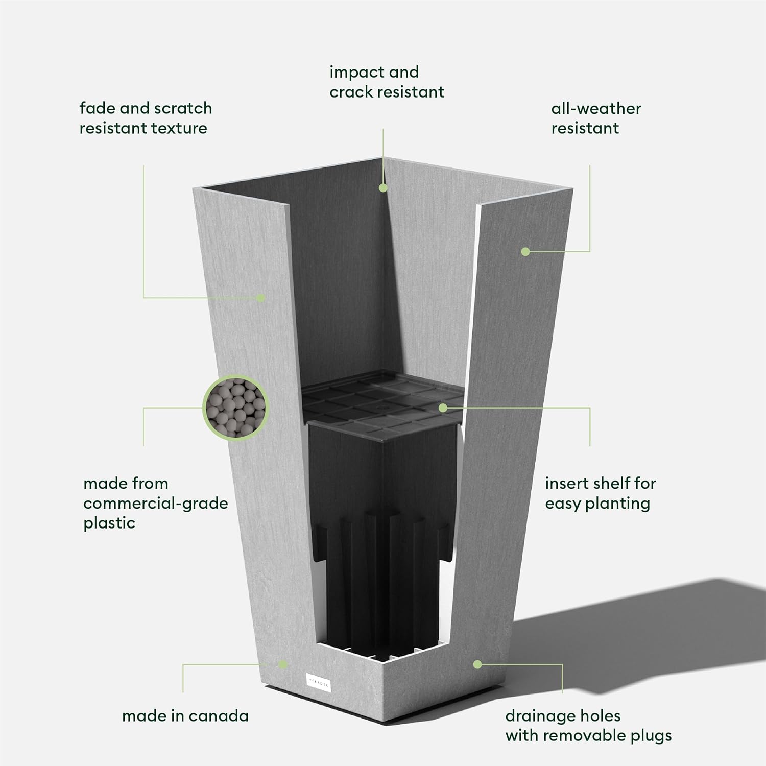 - PLASTIC COMPOSITE MATERIAL: This single wall molded planter has a smooth, scratch-resistant finish that is made from a high-grade Polypropylene composite, giving the tall square tapered pot its flexible and impact resistant qualities to withstand all seasons