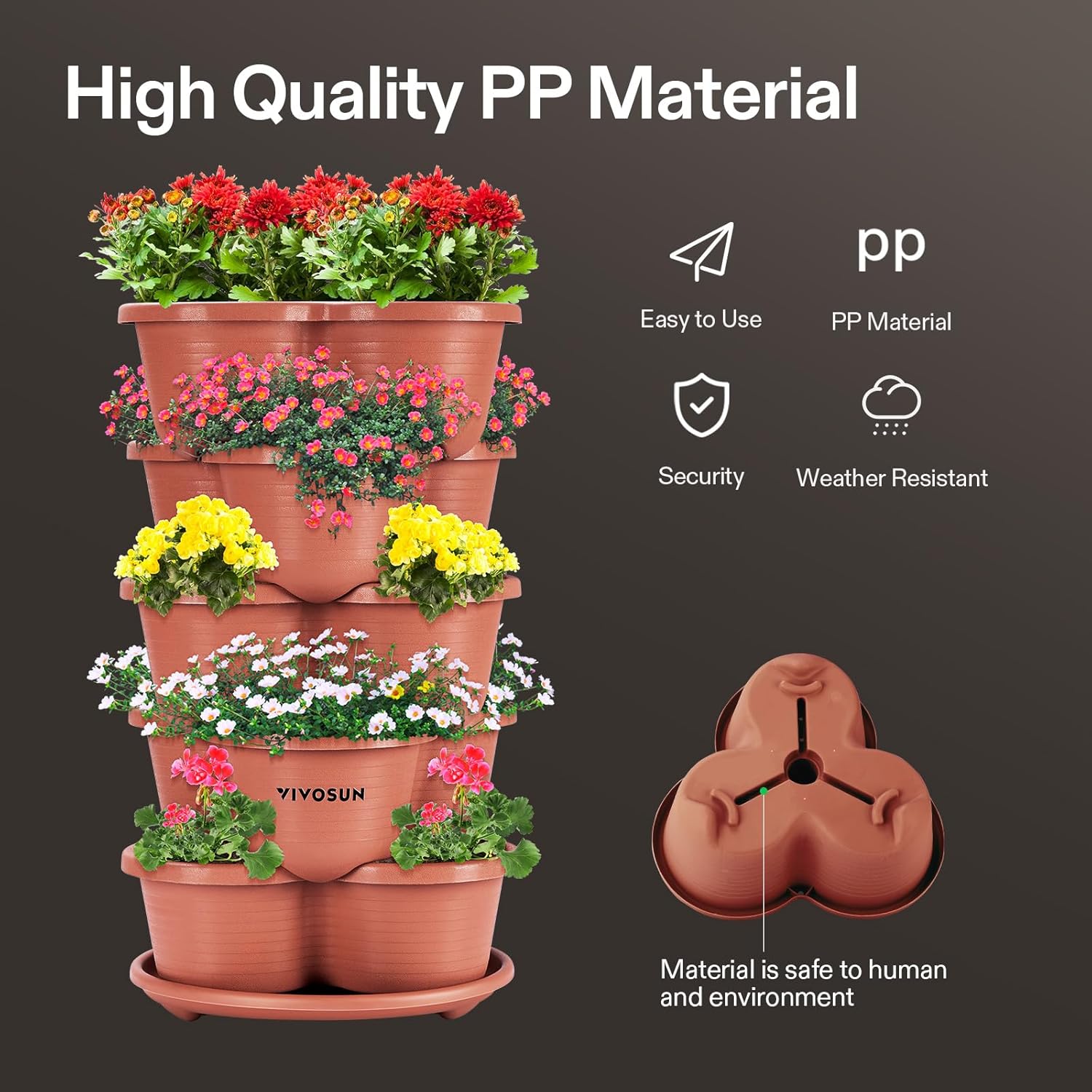 VIVOSUN 5 Tier Vertical Gardening Stackable Planter for Strawberries, Flowers, Herbs, Vegetables, Brown